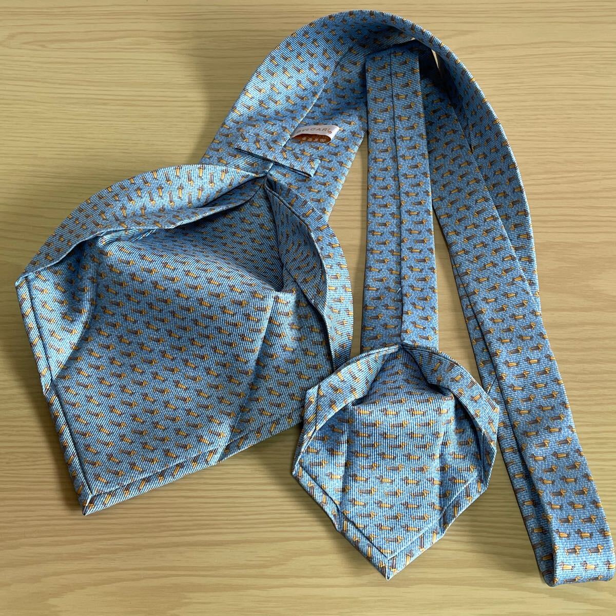 ブルガリのネクタイの特徴は、セブンフォールド、イタリア語でセッテピエゲと呼ばれる製造技法で作られていること。