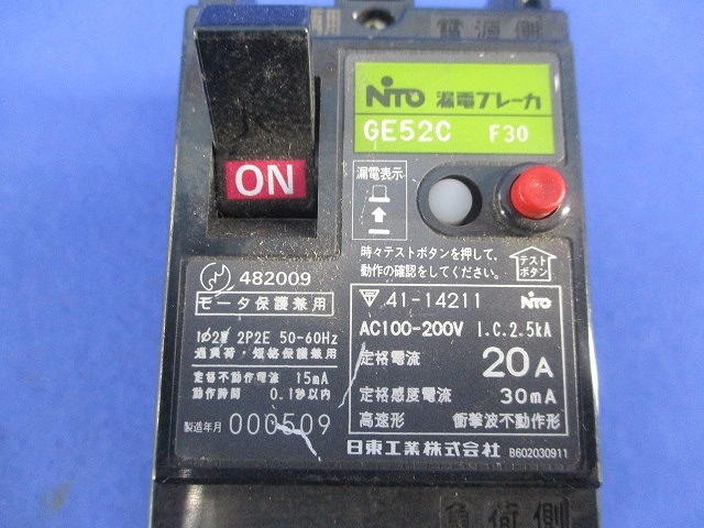 漏電ブレーカ2P2E20A 日東工業 GE52C