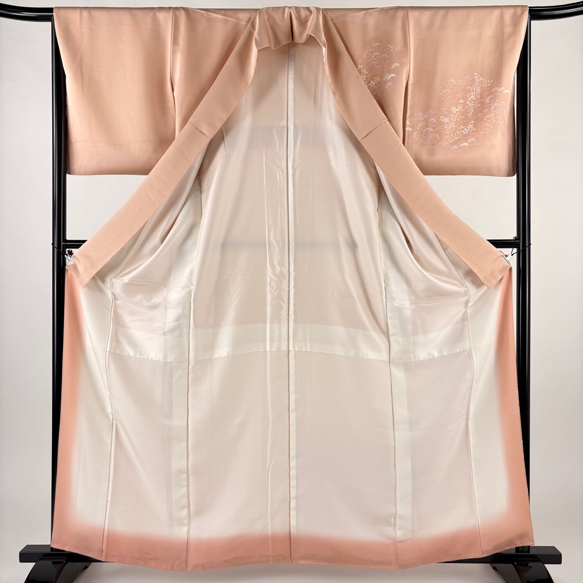 | 付下げ 秀品 笠松 草花 刺繍 ぼかし ピンクベージュ 袷 身丈161 裄丈64.5 M 正絹 【中古】 |