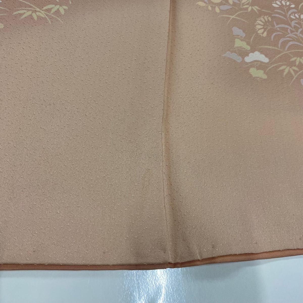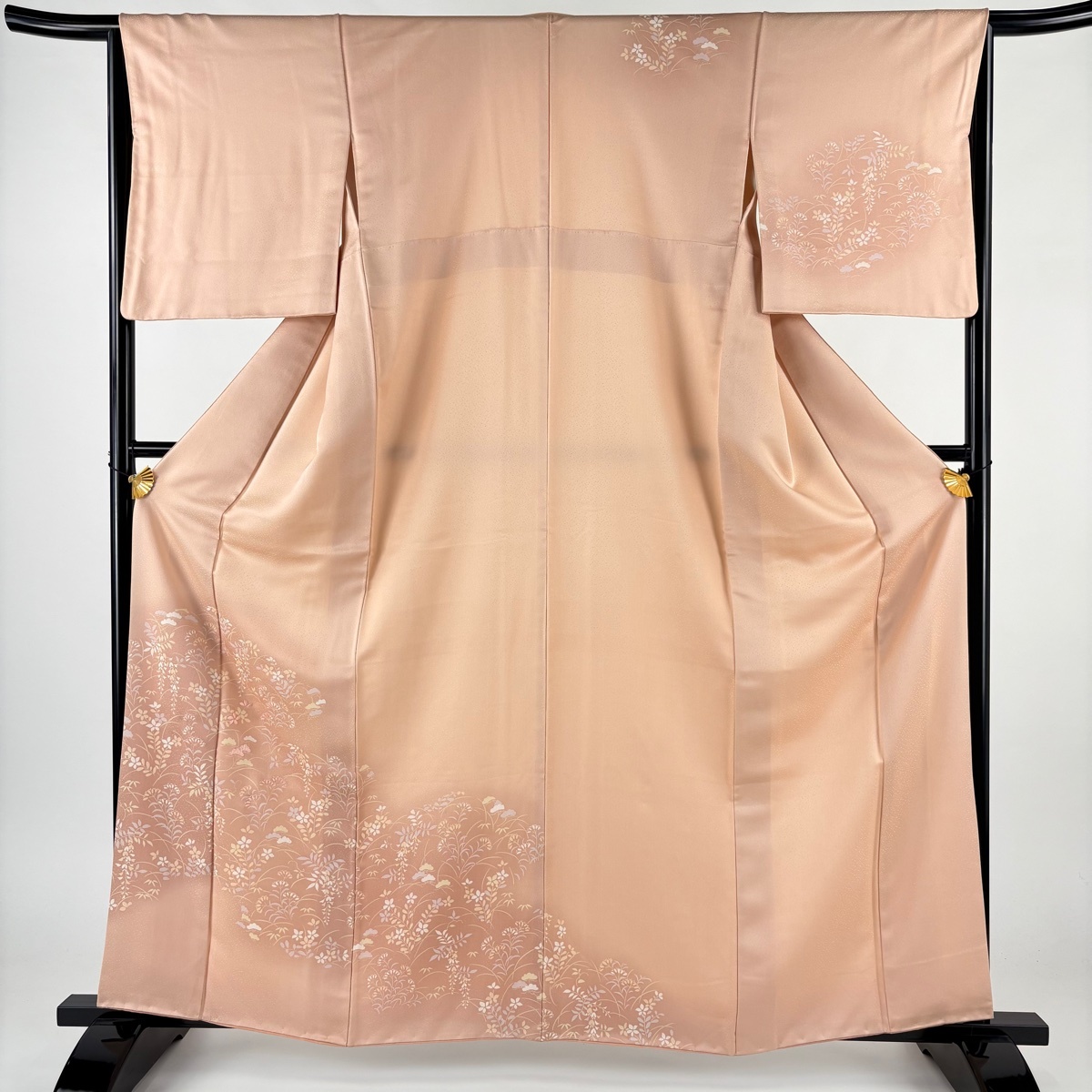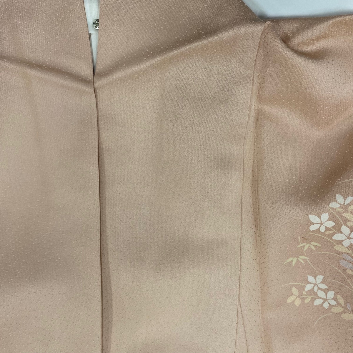 | 付下げ 秀品 笠松 草花 刺繍 ぼかし ピンクベージュ 袷 身丈161 裄丈64.5 M 正絹 【中古】 |