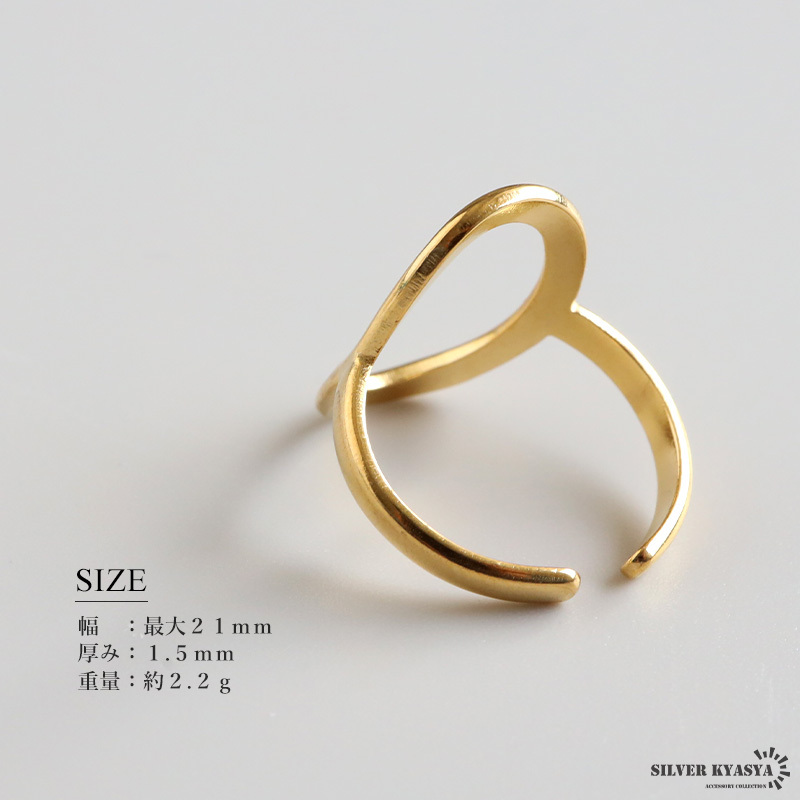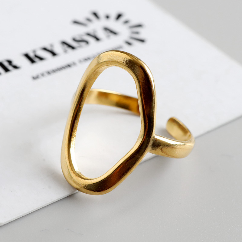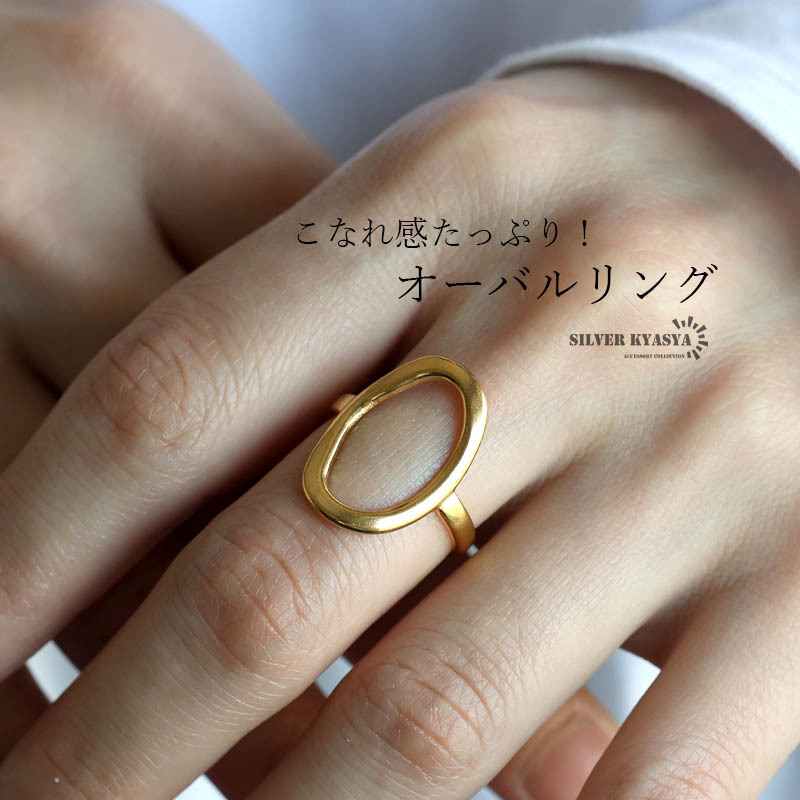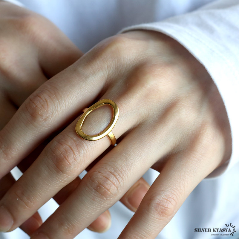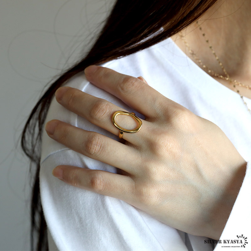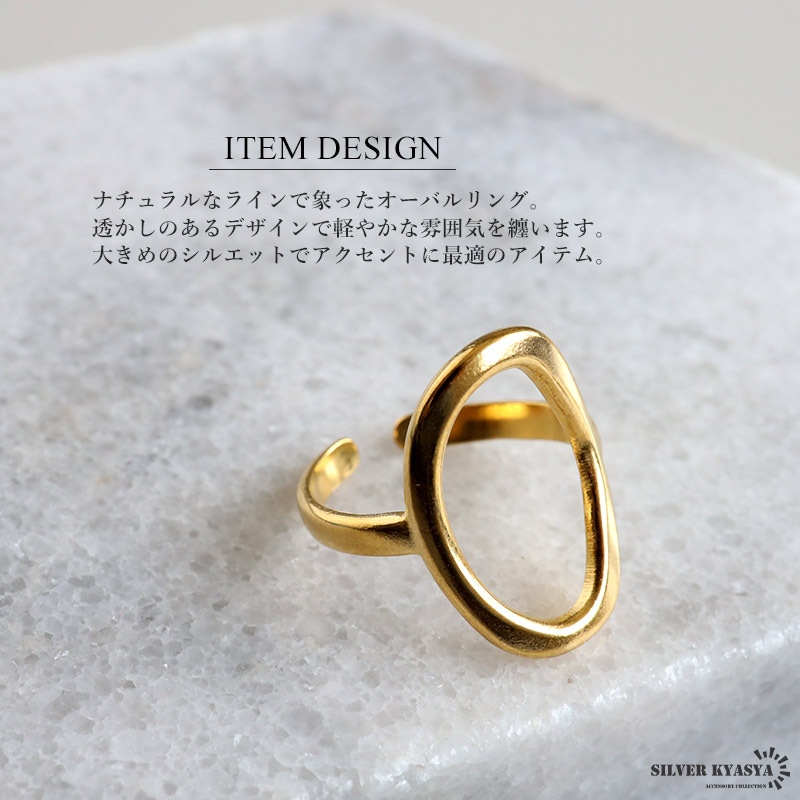 オーバルリング サークルリング 大ぶり ゴールドリング 18KGP ステンレス レディース フリーサイズ 金属アレルギー対応