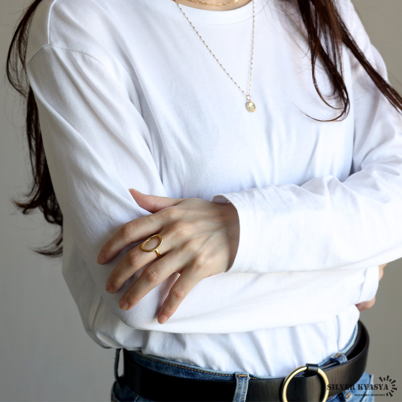 ナチュラルなラインで象ったオーバルリング。透かしのあるデザインで軽やかな雰囲気を纏います。大きめのシルエットでアクセントに最適のアイテム。