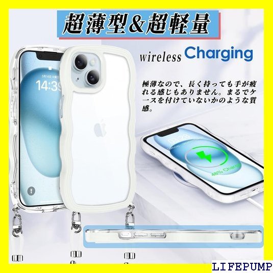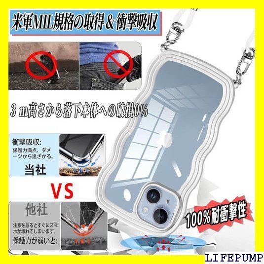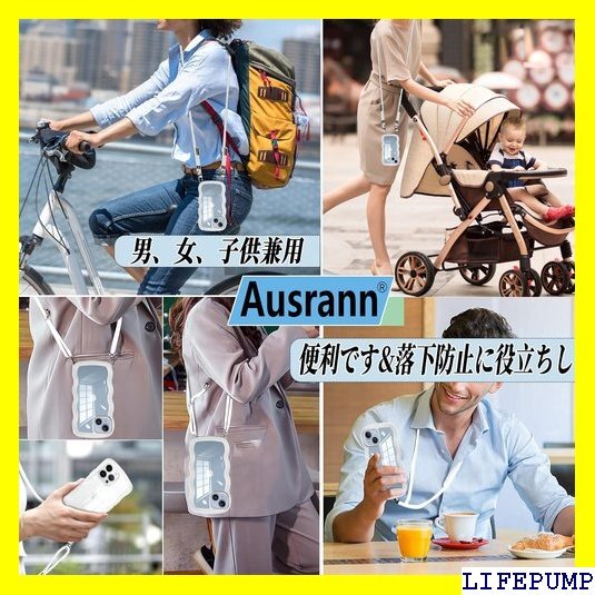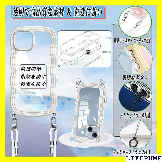 Ausrann iPhone 14/13 ケース スマホケースiphone 13/14 いphone14/13 ショルダー ストラップ2枚付き 紐付き 首掛け 肩がけ 斜め掛け 韓国 可愛い アイフォン 14/13 ケース ストラップホール付き 軽量 耐衝撃 シリコン 透明 TPU バンパー + 黄変防止 PC 米軍MIL規格 ワイヤレス充電 13/14 カバ-BW ホワイト 1438