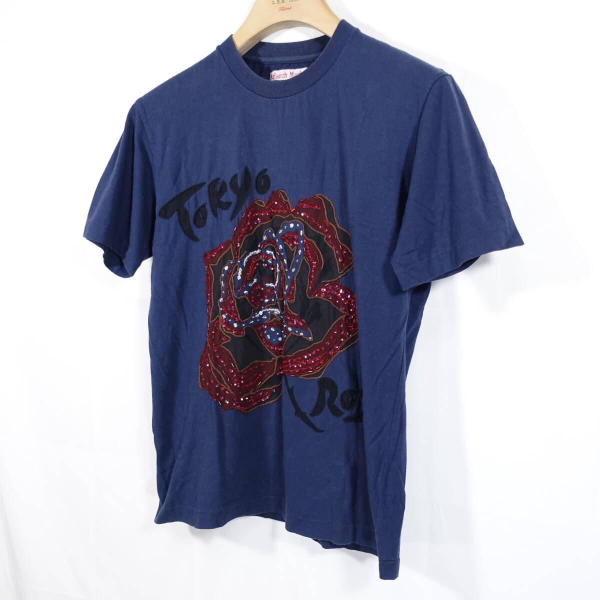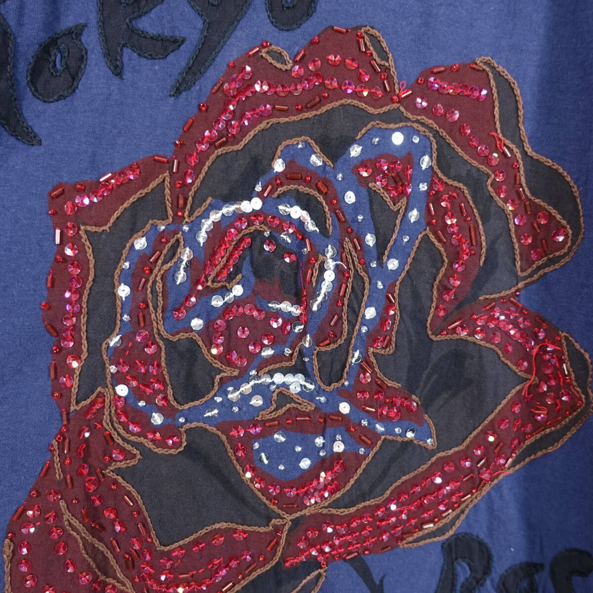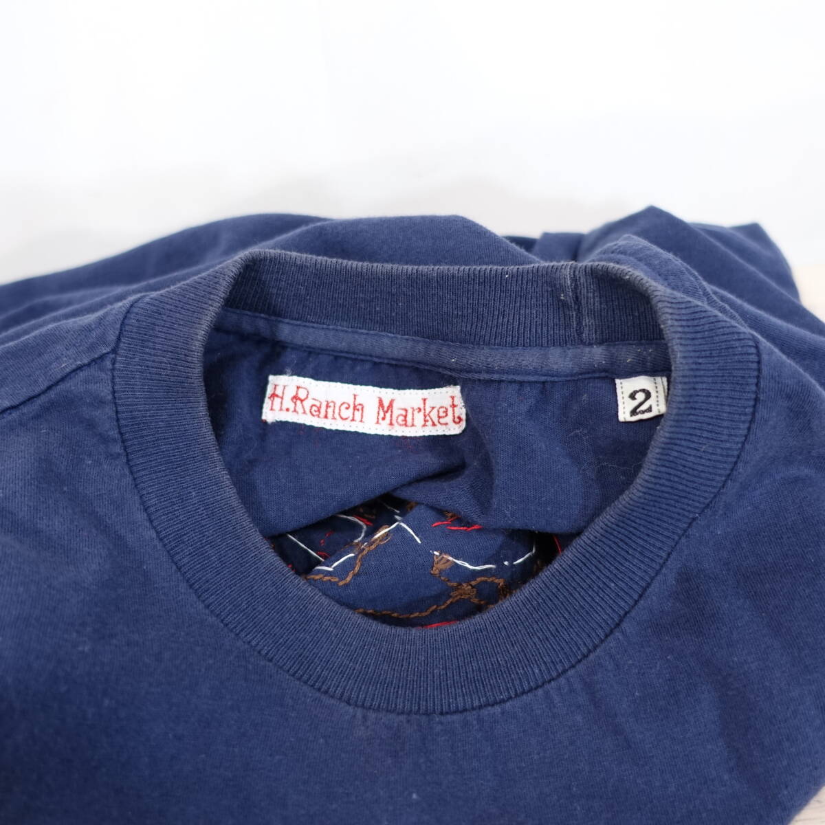 【良品】ハリウッドランチマーケット バラ刺繍Tシャツ ハリラン HRM HOLLYWOOD RANCH MARKET サイズ2(M相当)