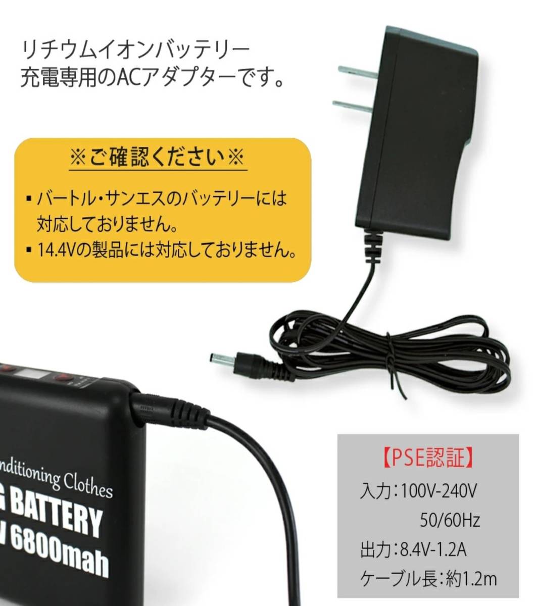 最短当日発送 ウィンドコア ヒーターベスト バッテリーの充電に使える 8.4V 1.2A 充電器 WZ3000 WZ3300 WZ4000 ワークマン ACアダプター ②
