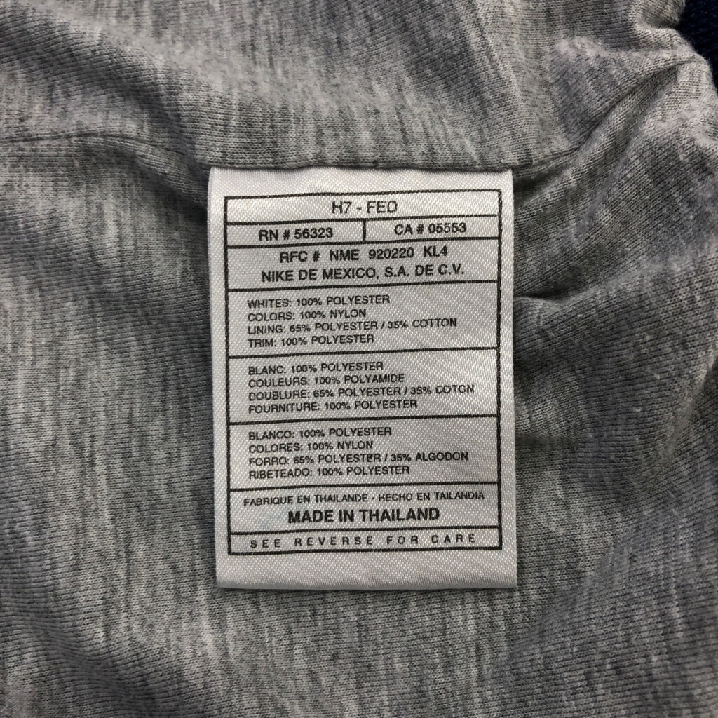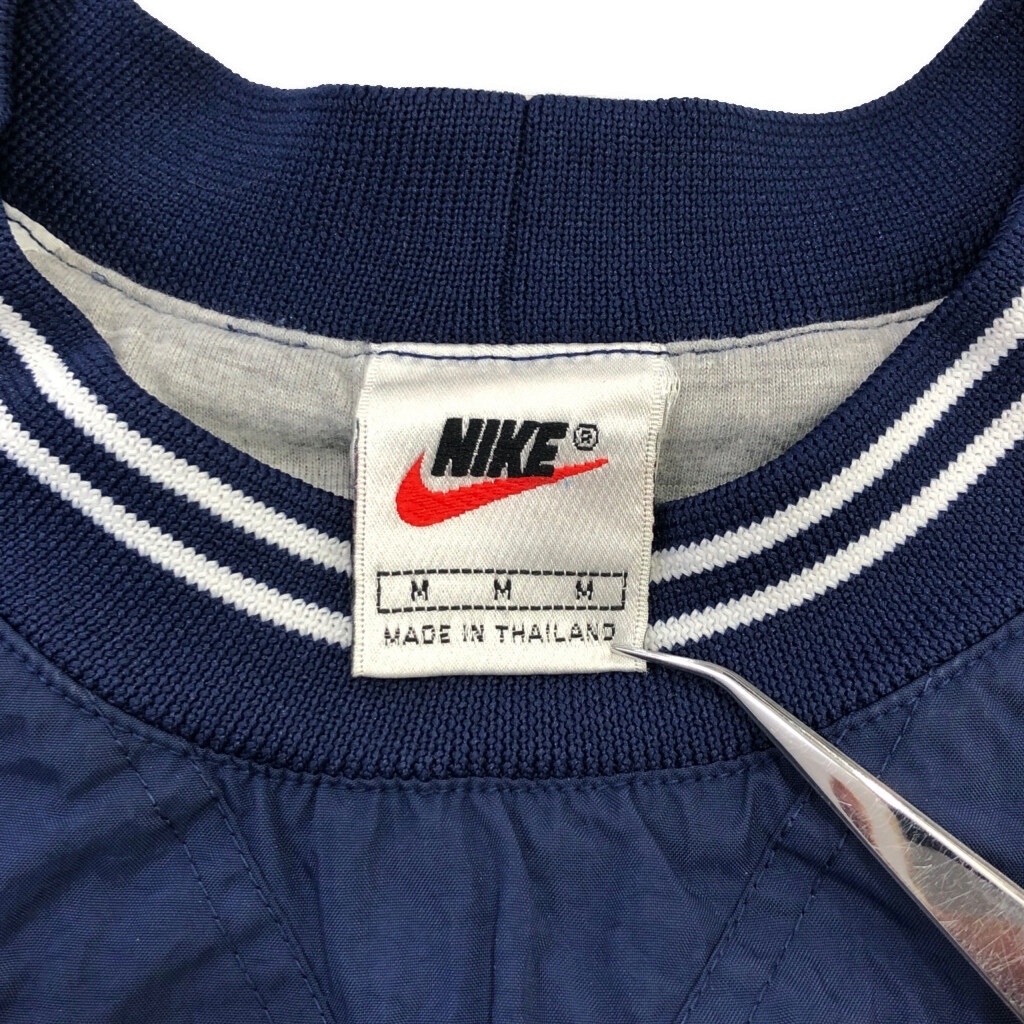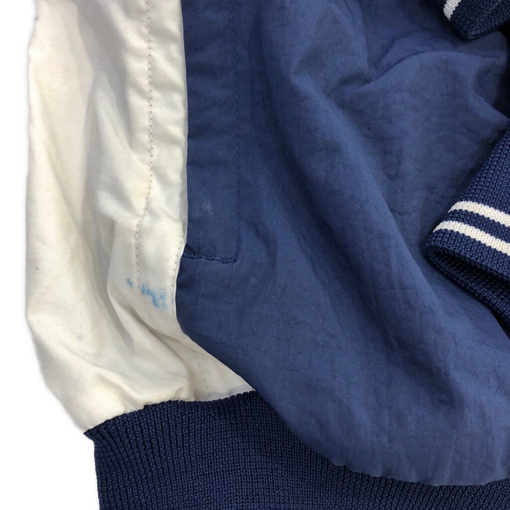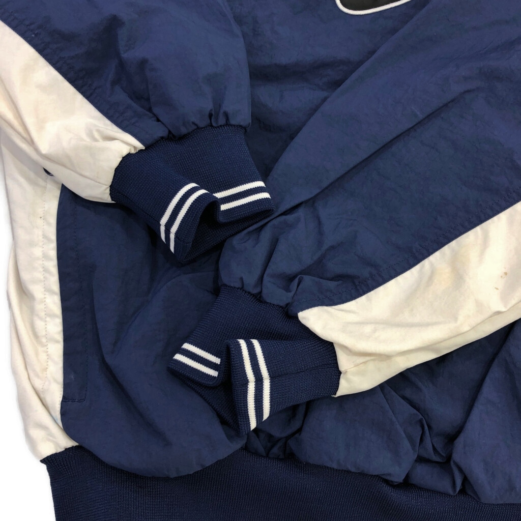 [商品管理番号] U7440 [ブランド] NIKE/ナイキ [サイズ] M [実寸サイズ] 着丈:約65cm 身幅:約65cm 裄丈:約88cm 袖下丈:約52cm [主な素材] 表地 : ナイロン [色] ネイビー [仕様] 90年代 スポーツ [状態] 汚れ:袖、袖先、腰 特記事項:色移り | |||
