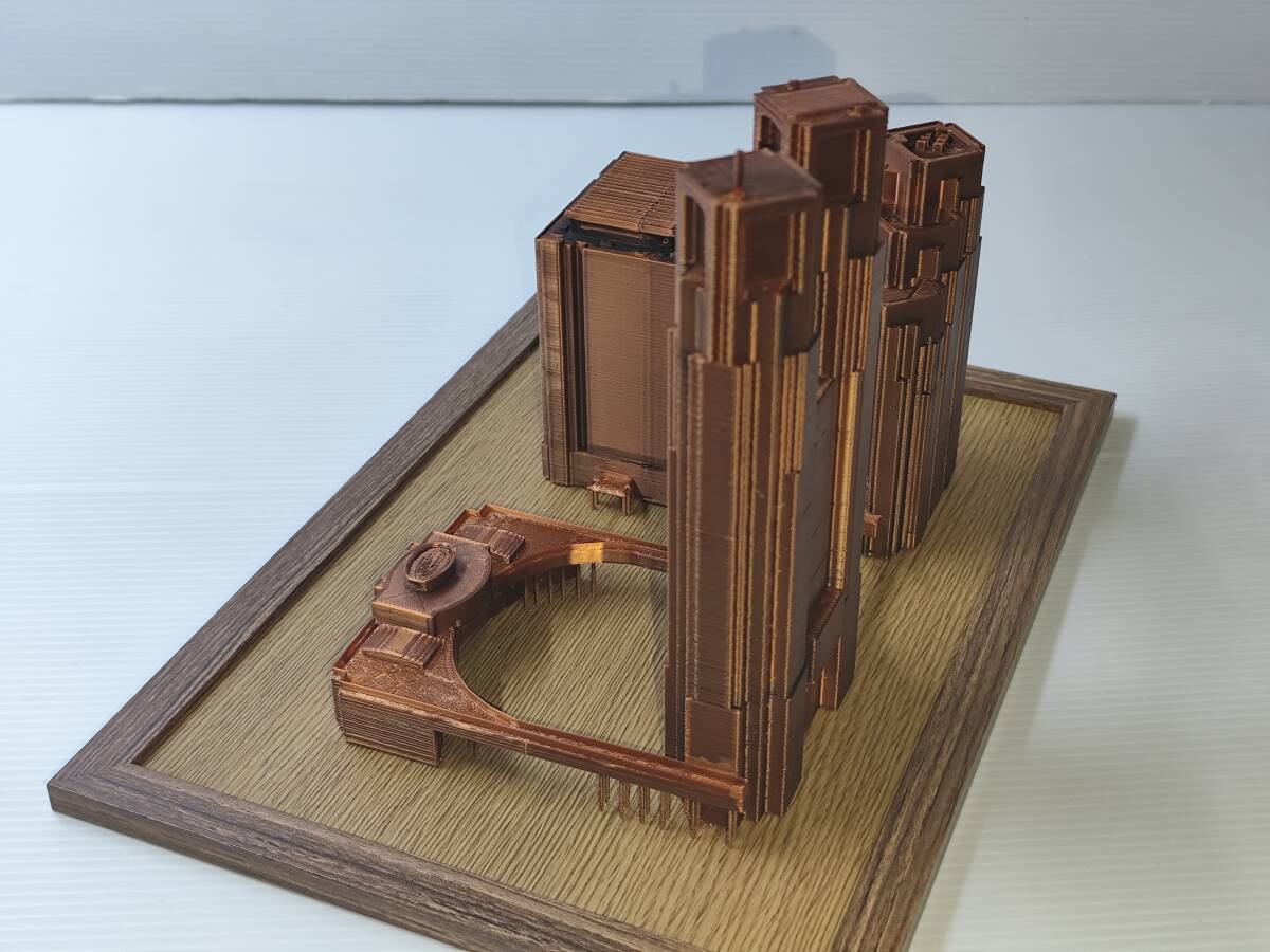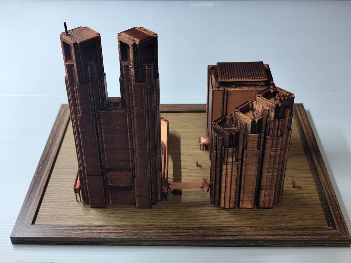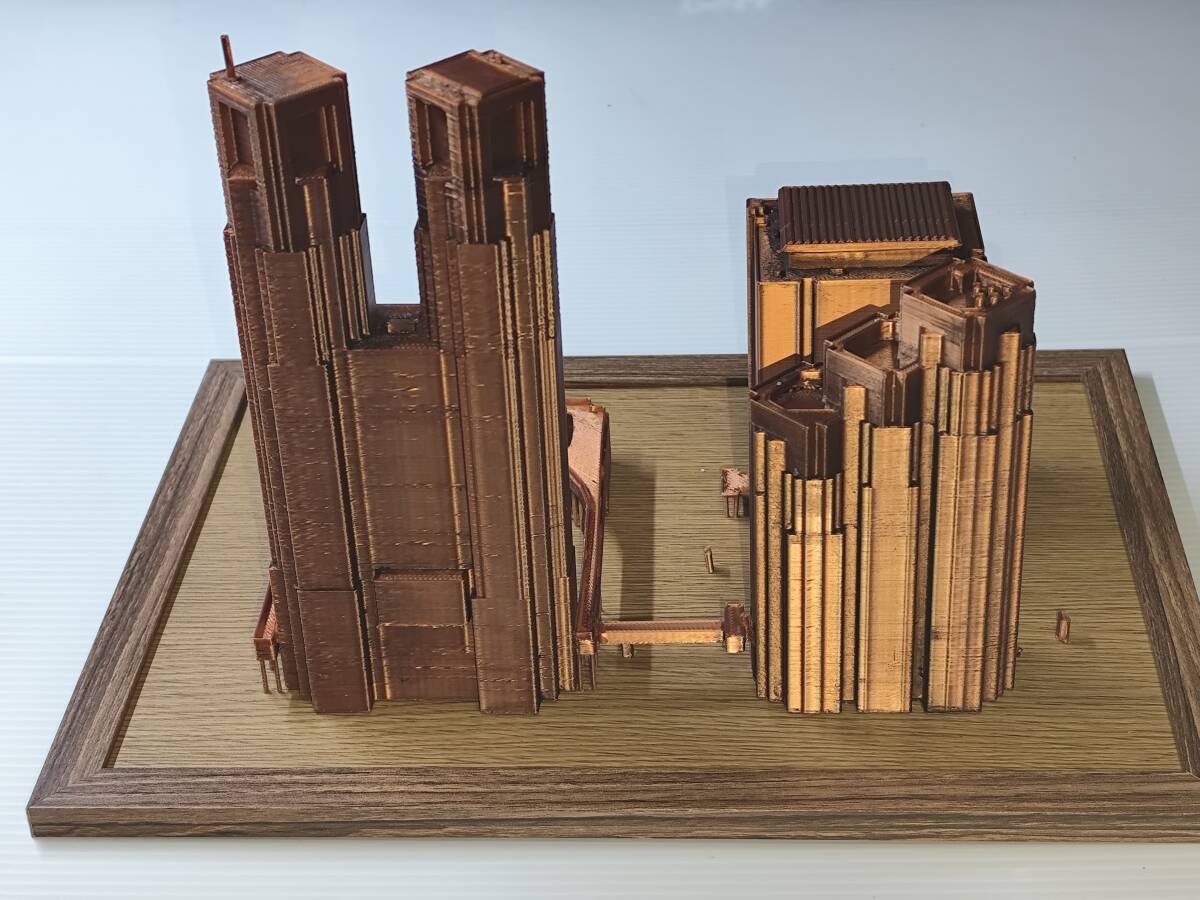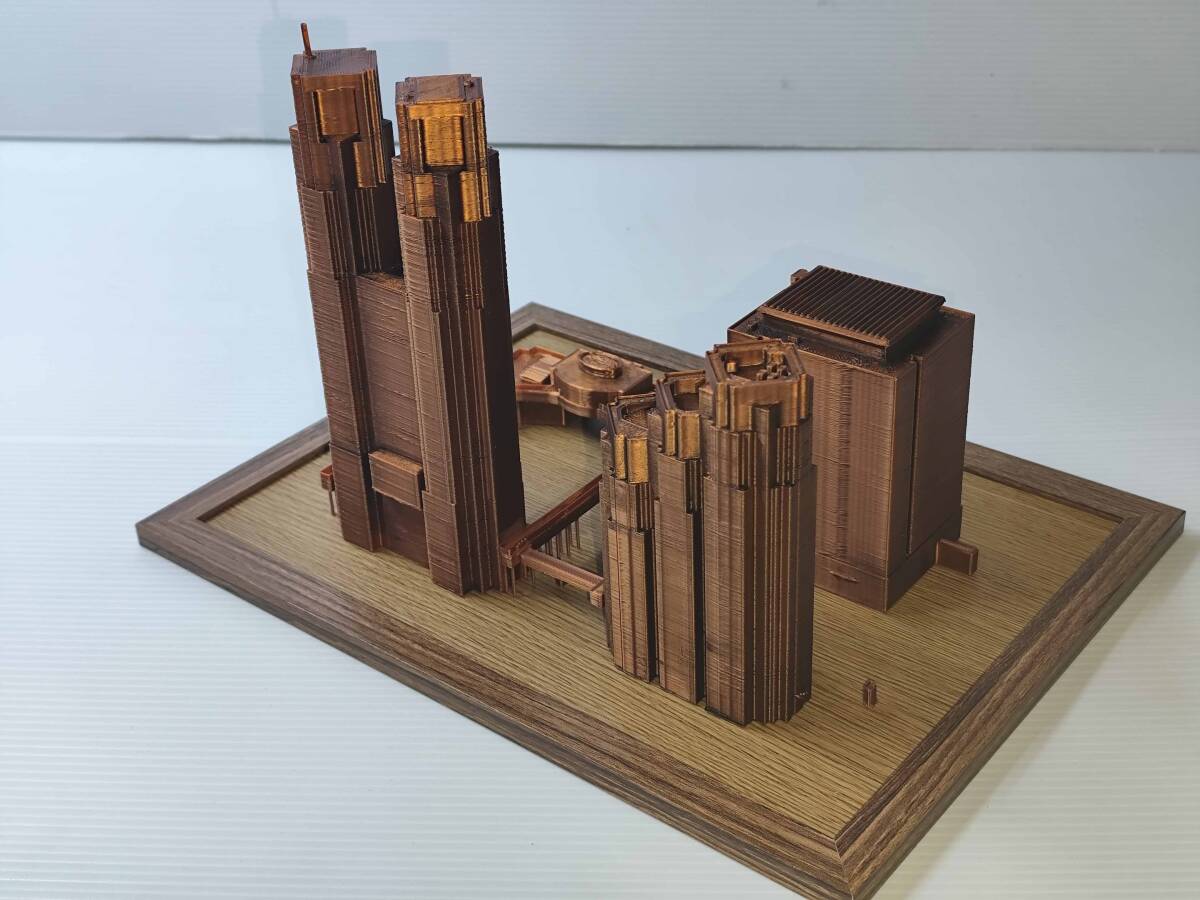 CITY GMLデータを使い3Dプリンタで制作した都庁の模型です。 スケール 1/150 ブロンド調の色調 ベースサイズ A5 版 注意 3Dプリント独特の積層痕があります。気になる方は購入をお控えください。