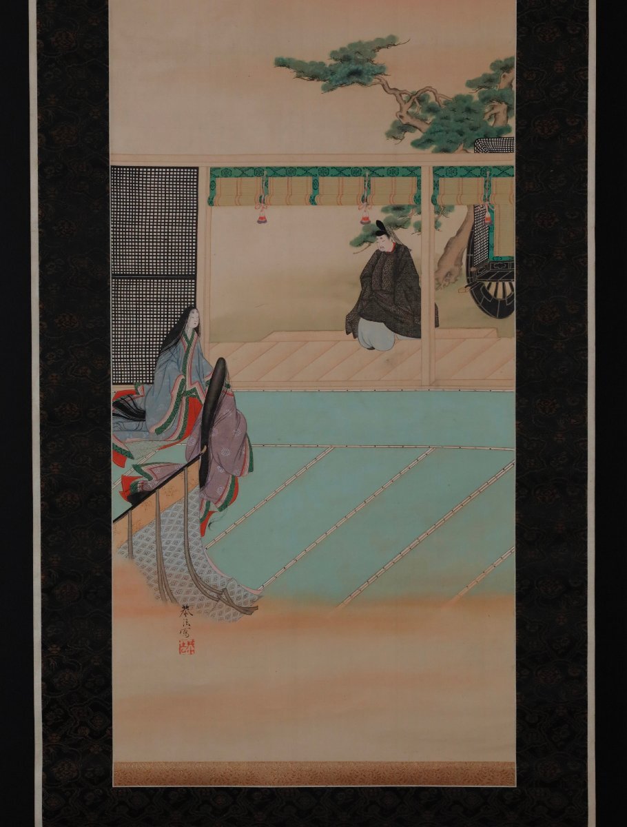 【模写】吉】12630 奥村恭法 平安人物図 鬼頭道恭師事 巨勢派 尾張 愛知県の人 大和絵 風俗画 物語絵 茶掛け 茶道具 掛軸 掛け軸 骨董品