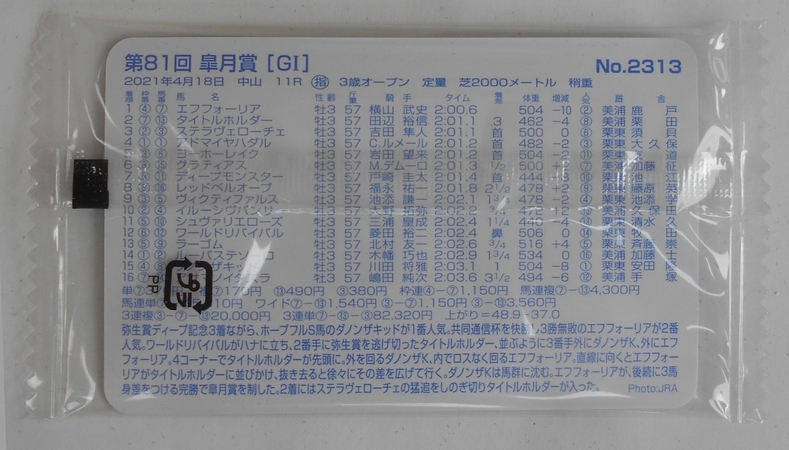 ◎まねき馬カード No.2313 第81回皐月賞(未開封)エフフォーリア