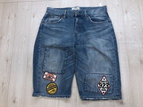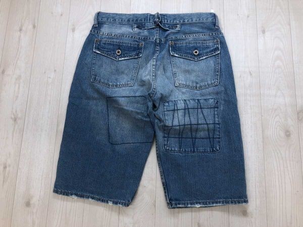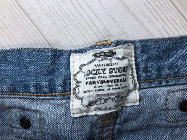 LUCKY STORE ラッキーストア アメカジ サーフ リペア加工 ハーフ ショート デニム ジーンズ パンツ ボトムス メンズ コットン100% 32 青 です。