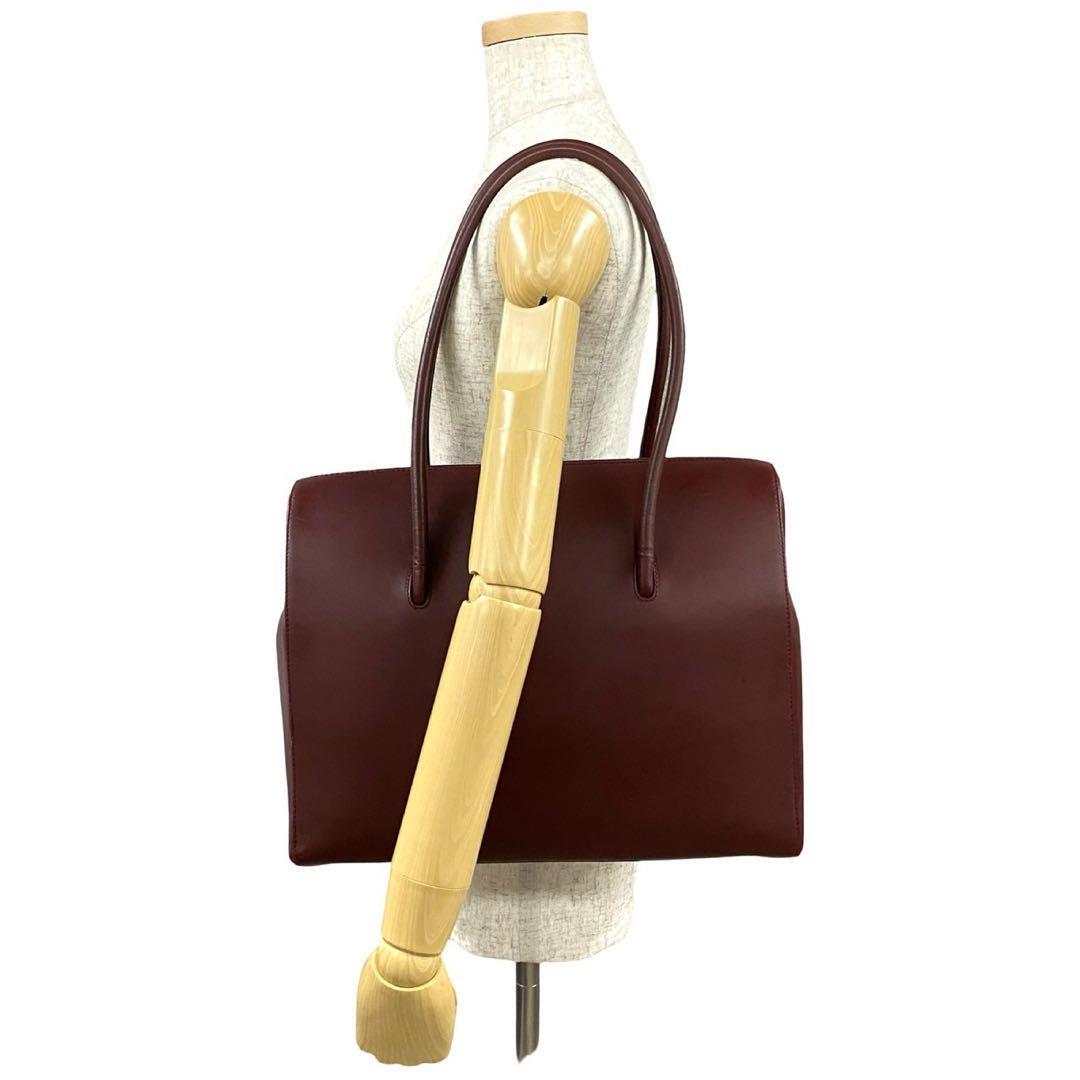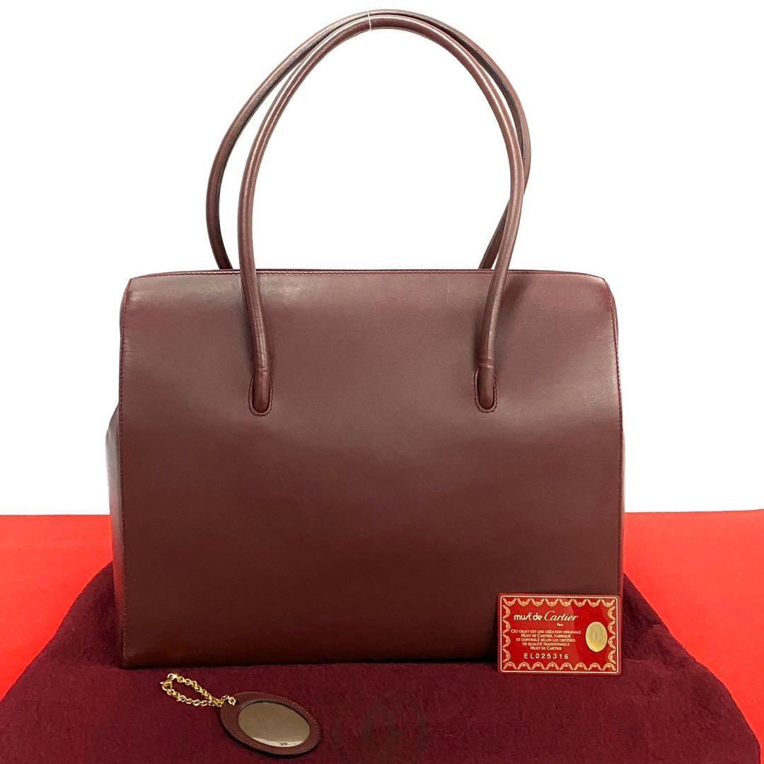 極 美品 袋付 CARTIER カルティエ ヴィンテージ マストライン レザー 本革 トートバッグ ハンドバッグ ショルダーバッグ ボルドー 84722