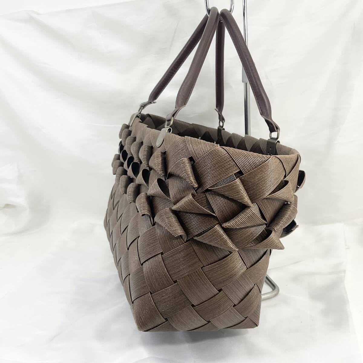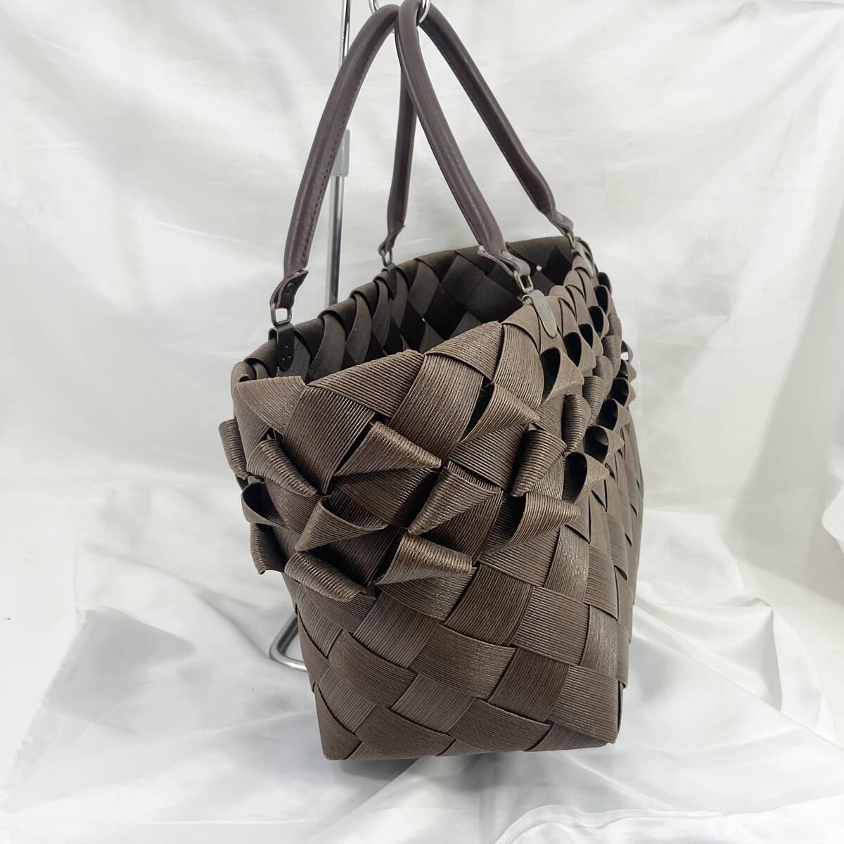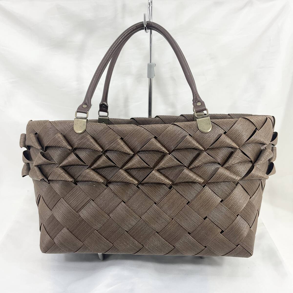 【美品】 エコクラフト カゴバッグ トートバッグ ブラウン 編みバッグ サマーバッグ 手提げ(C51)