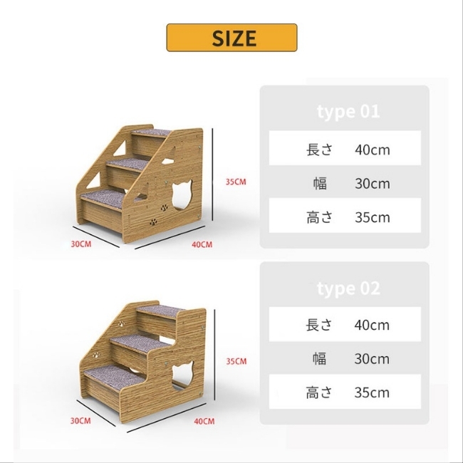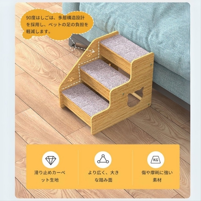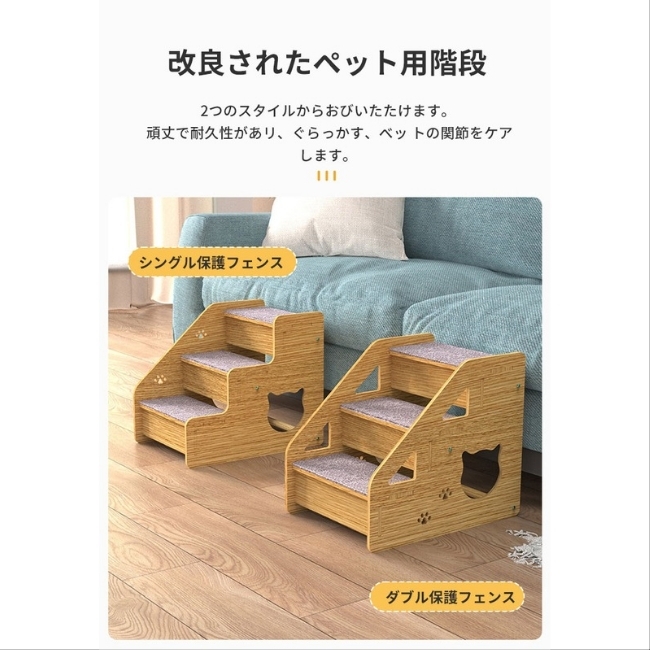 ご覧いただきありがとうございます。 2デザイン展開です。 ご希望のデザインを事前に お手数ですが「質問する」からご連絡ください。 商品名:ペットスロープ ペットステップ 【この商品が品質で選ばれる理由】 人間工学に基づいた設計と安全な素材で、ペットの足腰の負担を軽減し、安心してお使いいただけます。 ■こんな悩みありませんか? ・愛猫が高齢になり、ソファやベッドへの上り下りが大変そうですか? ・子猫や足腰の弱いペットが、段差でつまづいたり、怪我をするのが心配ですか? ・ペットが無理にジャンプすることで、関節に負担がかかるのが気になりますか? ★こんな時におすすめ! ・愛猫の足腰の負担を減らし、安全に昇降させたい時におすすめです。 ・ソファやベッドなど、ペットが行きたい場所への設置に便利です。 ・お部屋の雰囲気に合わせて、おしゃれなペット用品を選びたい時に役立ちます。 ------------------------------------- 【足腰に優しい設計】 ・小型犬・老犬・子猫たちのための3段ペットステップです。 ・無理をして飛び降りたり、ケガやヘルニア予防に最適です。 ・ベッドやソファーなどの段差を上り下りが大変な小型犬・老犬・子猫を優しくサポートします。 ・90度はしごは、人間工学設計、多層構造設計を採用し、ペットの足の負担を軽減します。 【環境に優しい素材と耐久性】 ・環境に優しい材料で作られており、取り付けが簡単で、工具を使用する必要がありません。 ・階段には滑り止めカーペットが付いており、防水性、耐摩耗性に優れ、長持ちします。 ご不明な点などございましたら お気軽に「質問する」からお問い合わせください。 |