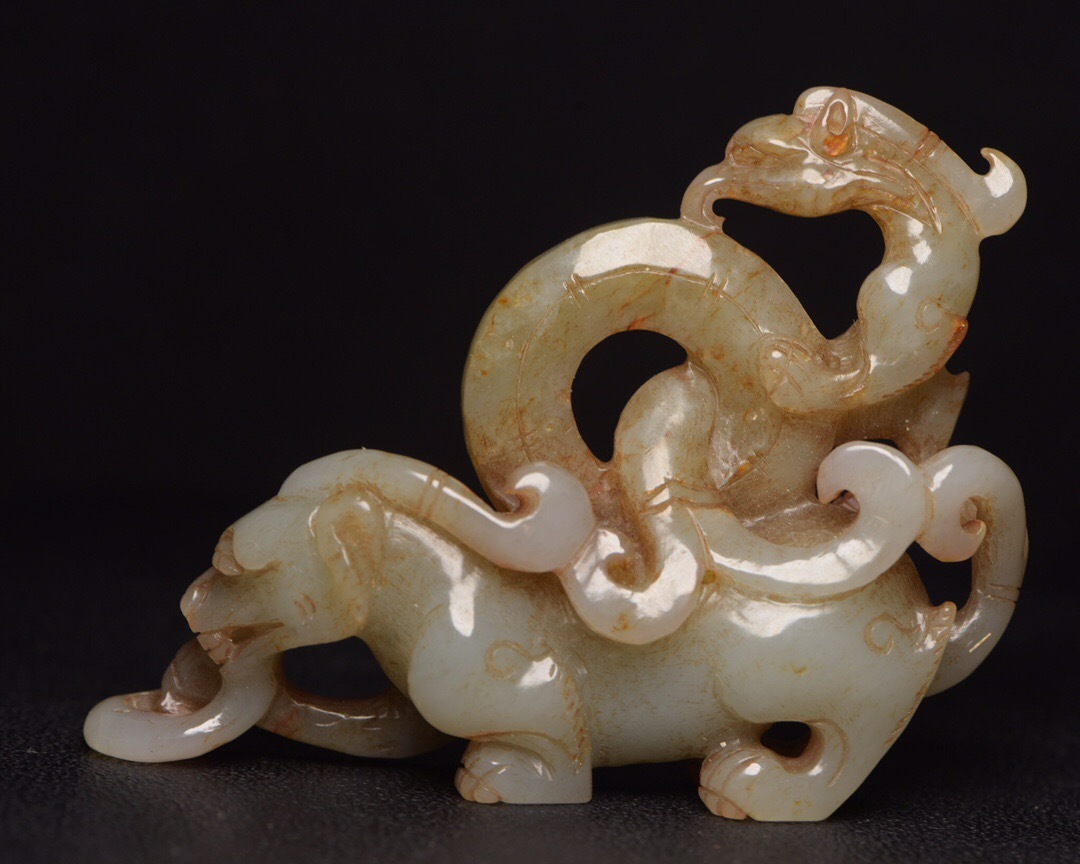 | 【蔵友館蔵品・和田玉製・細密彫・龍鳳呈祥・置物・賞物】・古董品・中国古玩・時代物・希少珍品・中国時代美術 |