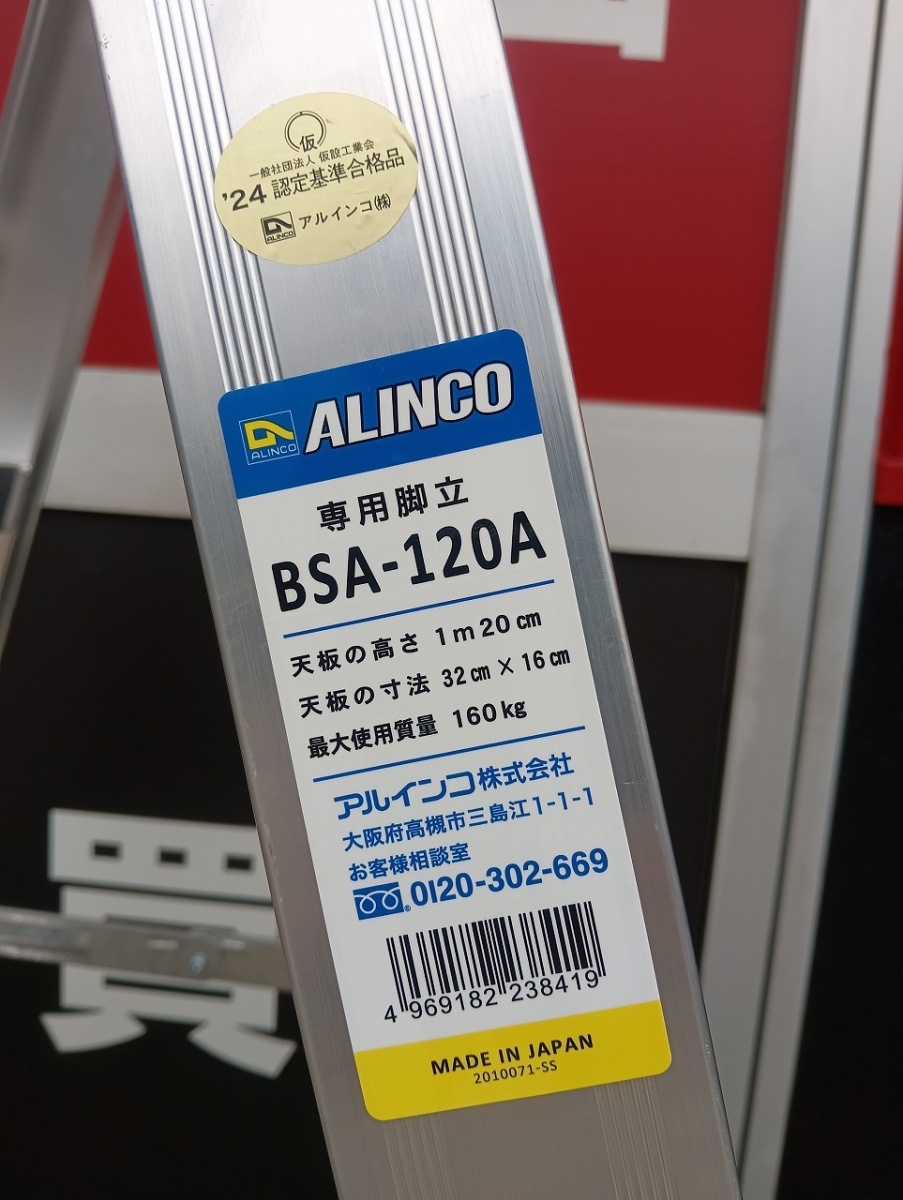 ★ 【埼玉県 坂戸市 引取限定 発送不可 】 中古 ALINCO アルインコ 専用脚立 BSA-120A 天板高さ 1.2m 管1