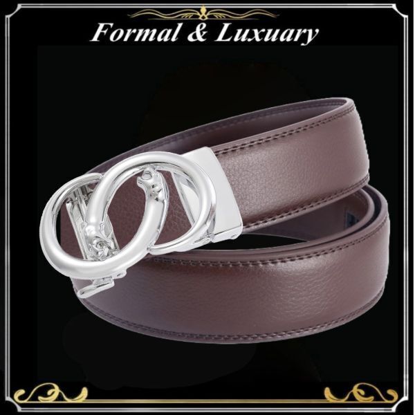 ベルト j36【茶】ダーク 穴なし 無段階調整ベルト ゴルフベルト 人気 オートロック メンズ 革 ジーンズ ビジネス カジュアル