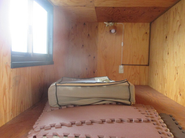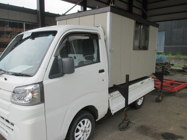 2025-00 コンテナ軽トラ用自作 鉄骨骨組み 断熱材入りコンパネ張り外壁材大きさが約220cm幅136㎝高さ130cm キャスター付き4点足つき