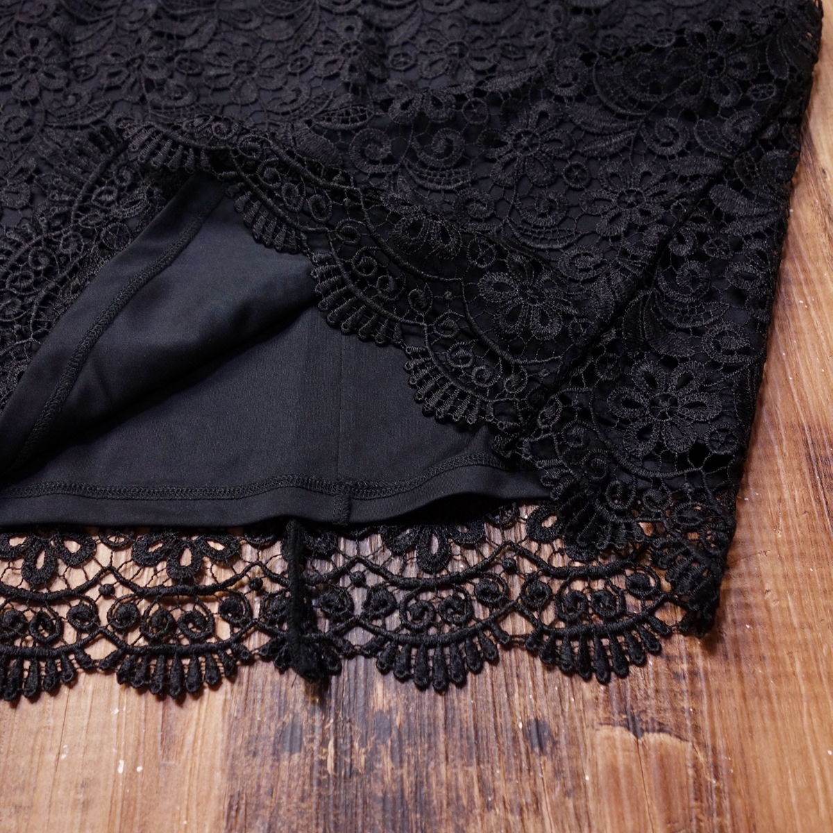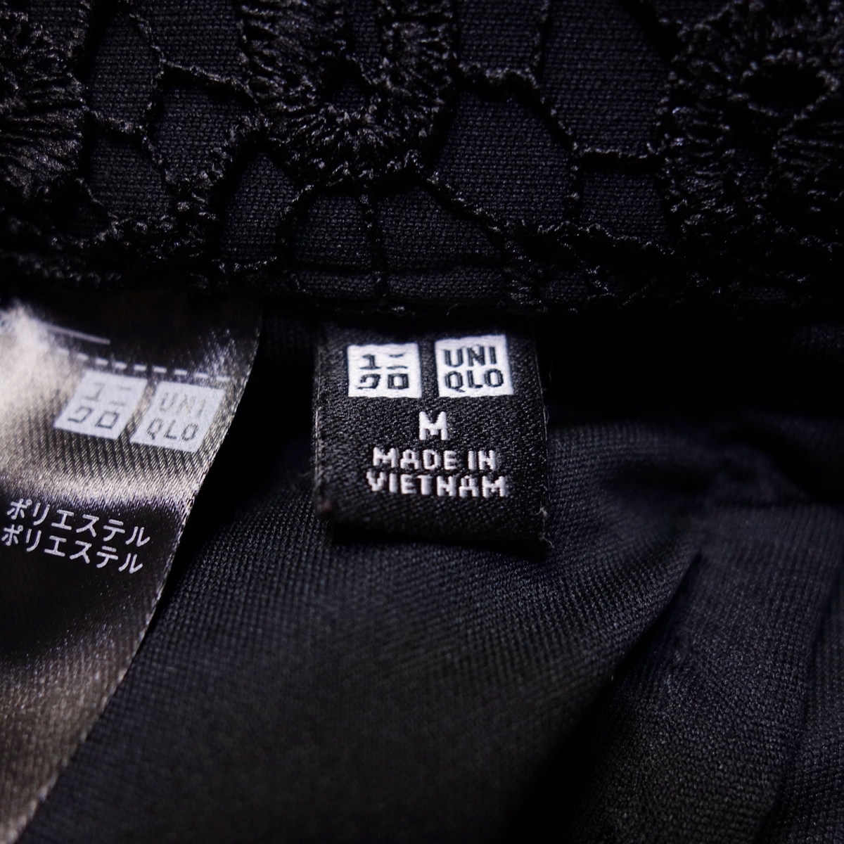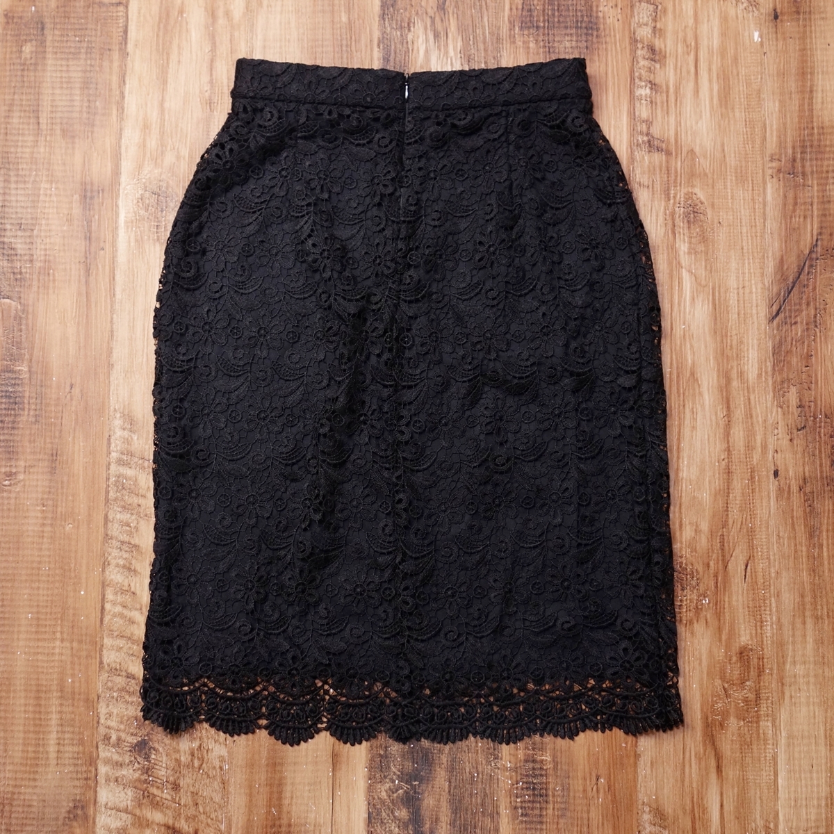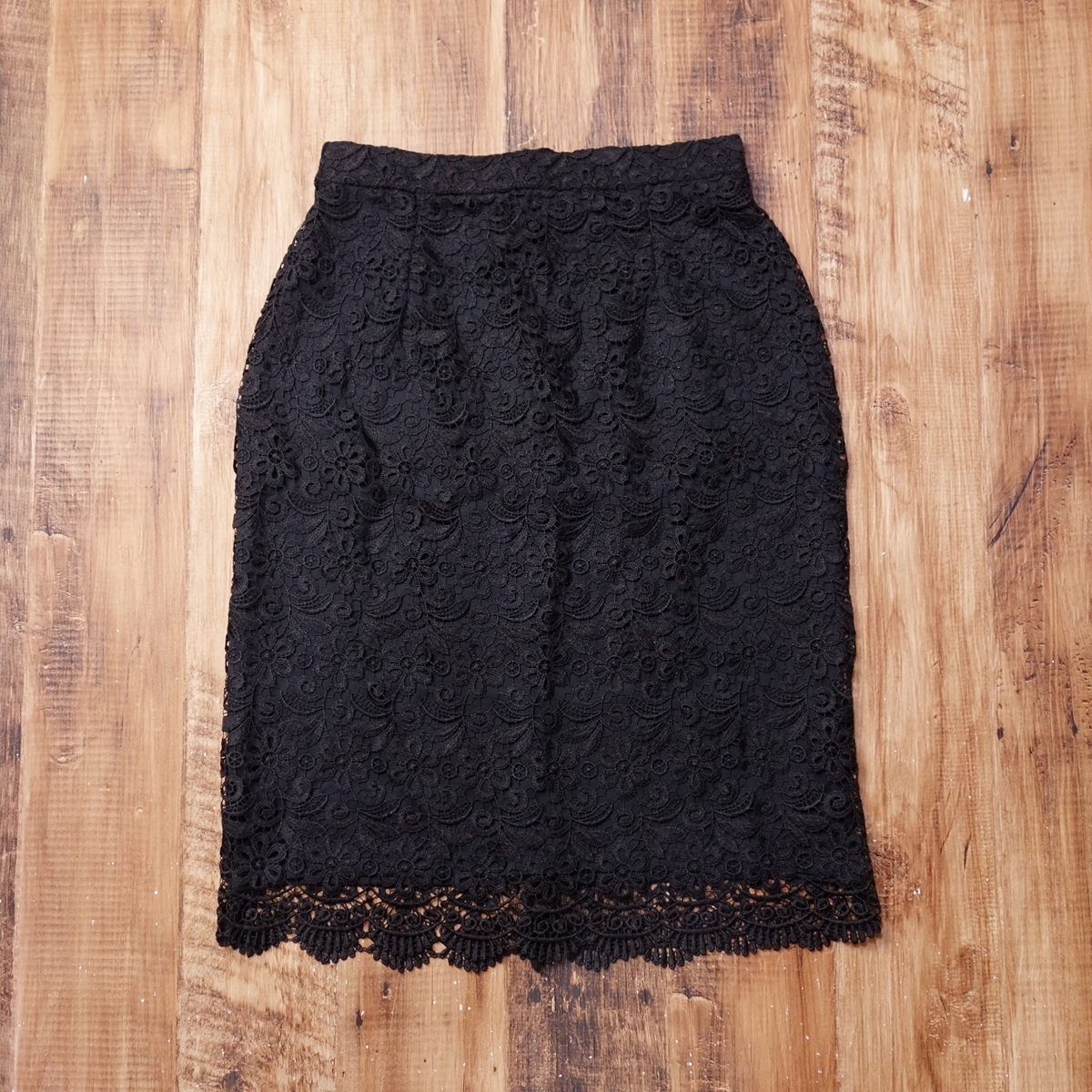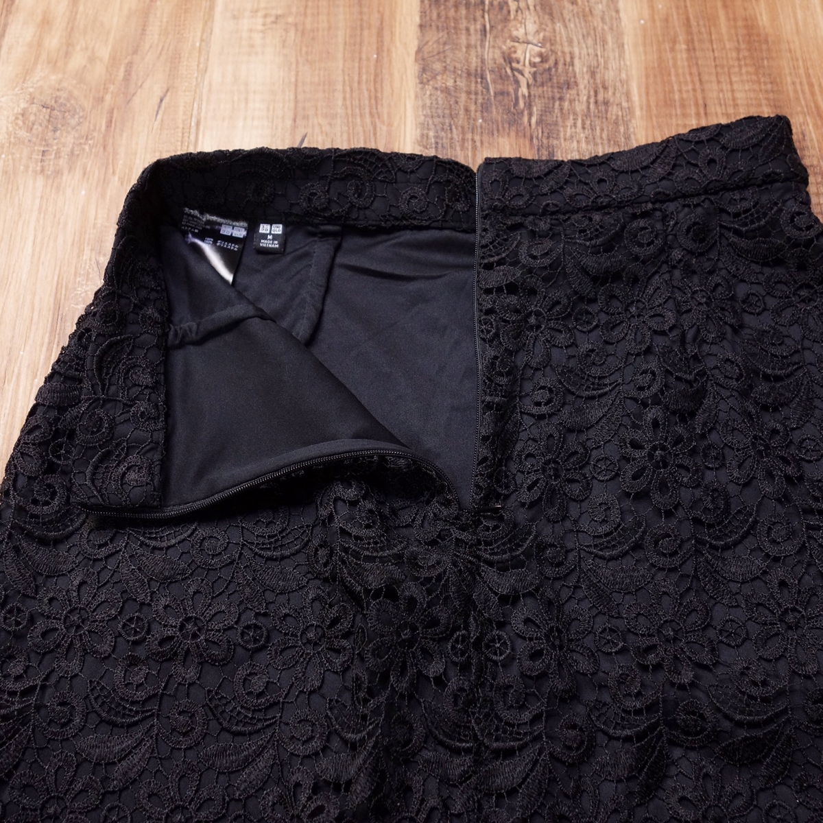 美品 ユニクロ UNIQLO レースタイトスカート レディース 花柄 ペンシル 膝丈 Mサイズ 黒 LA17