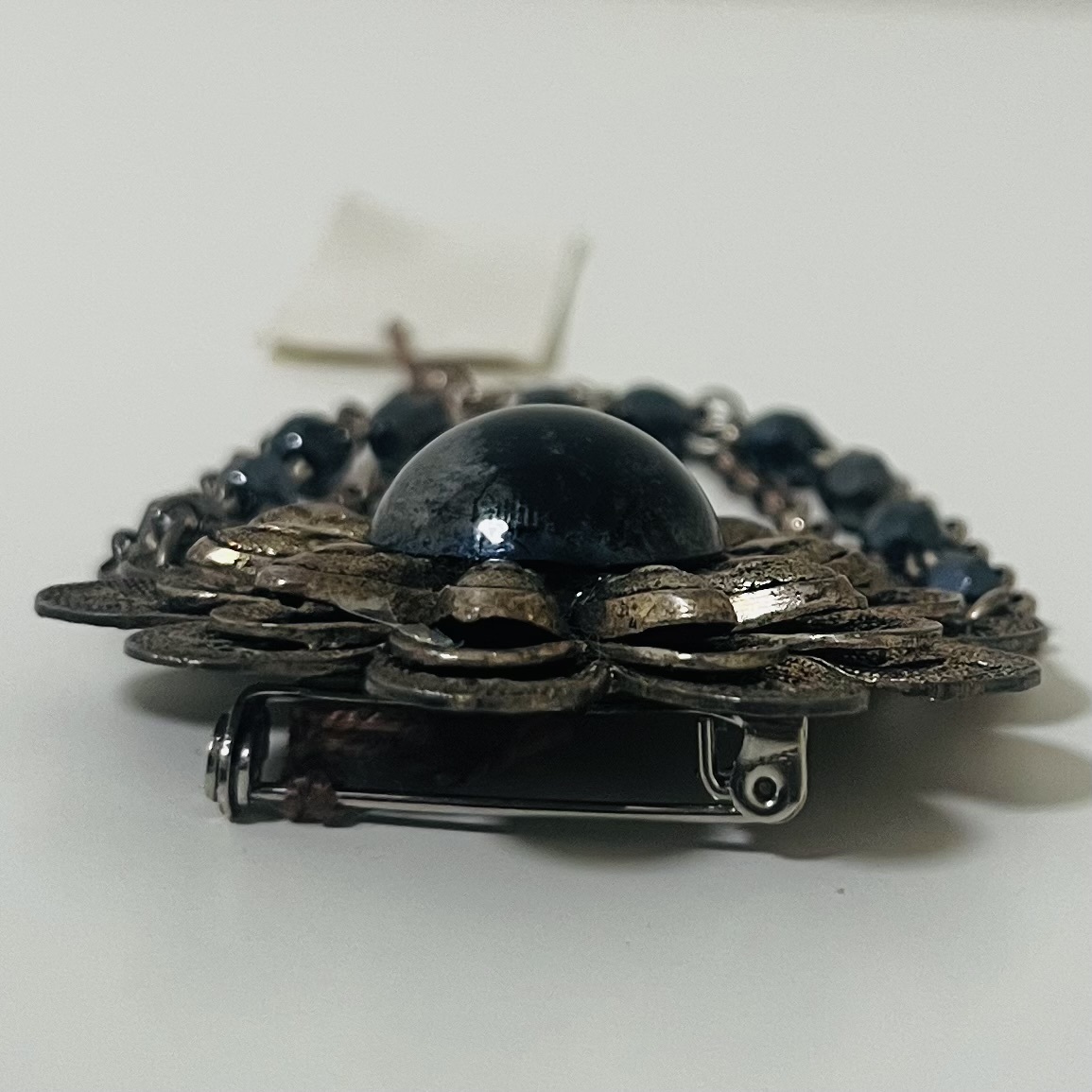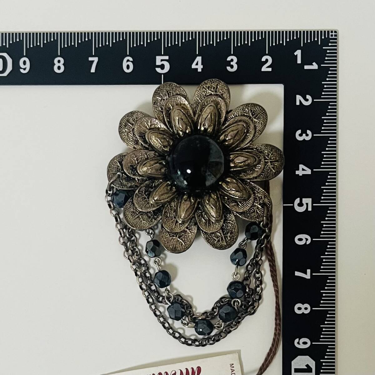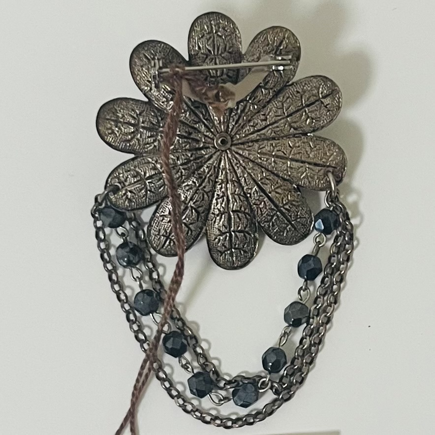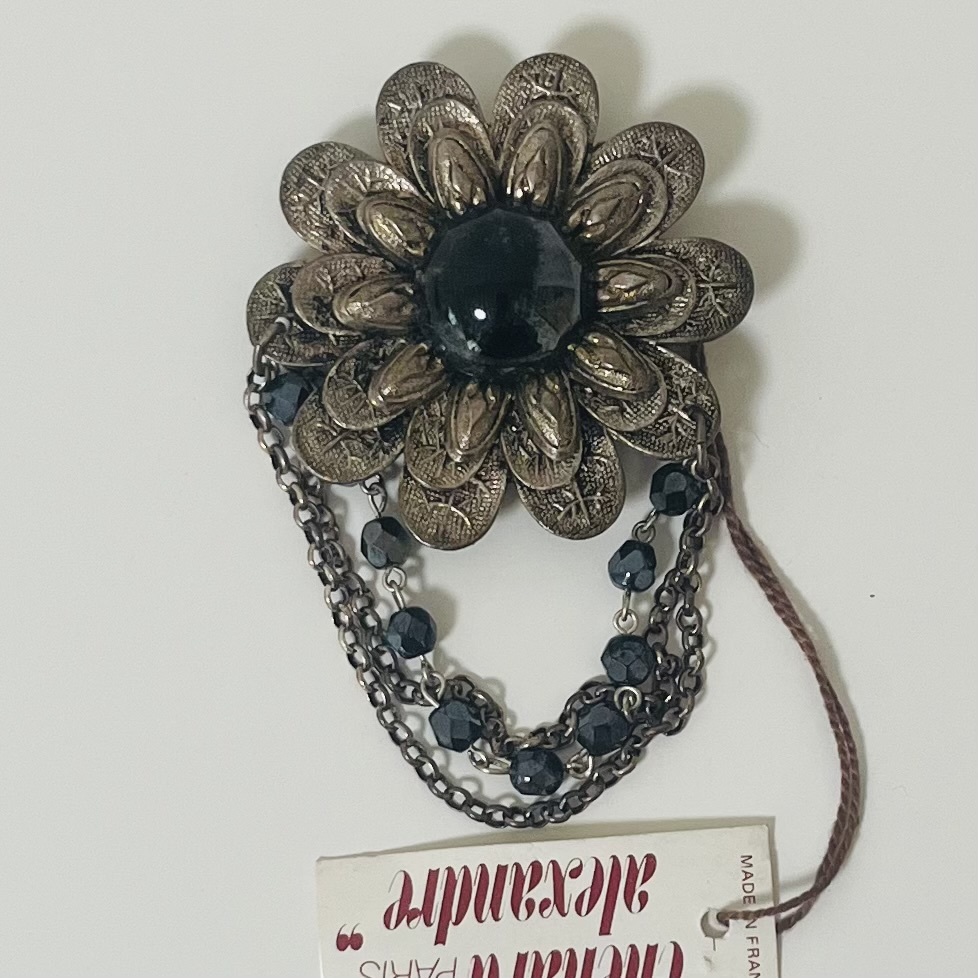 111 アンティーク ビンテージ アクセサリー ブローチ タグ付き 未使用保管品!シルバーカラー ガラス 揺れ感 フラワー 花 海外製 フランス