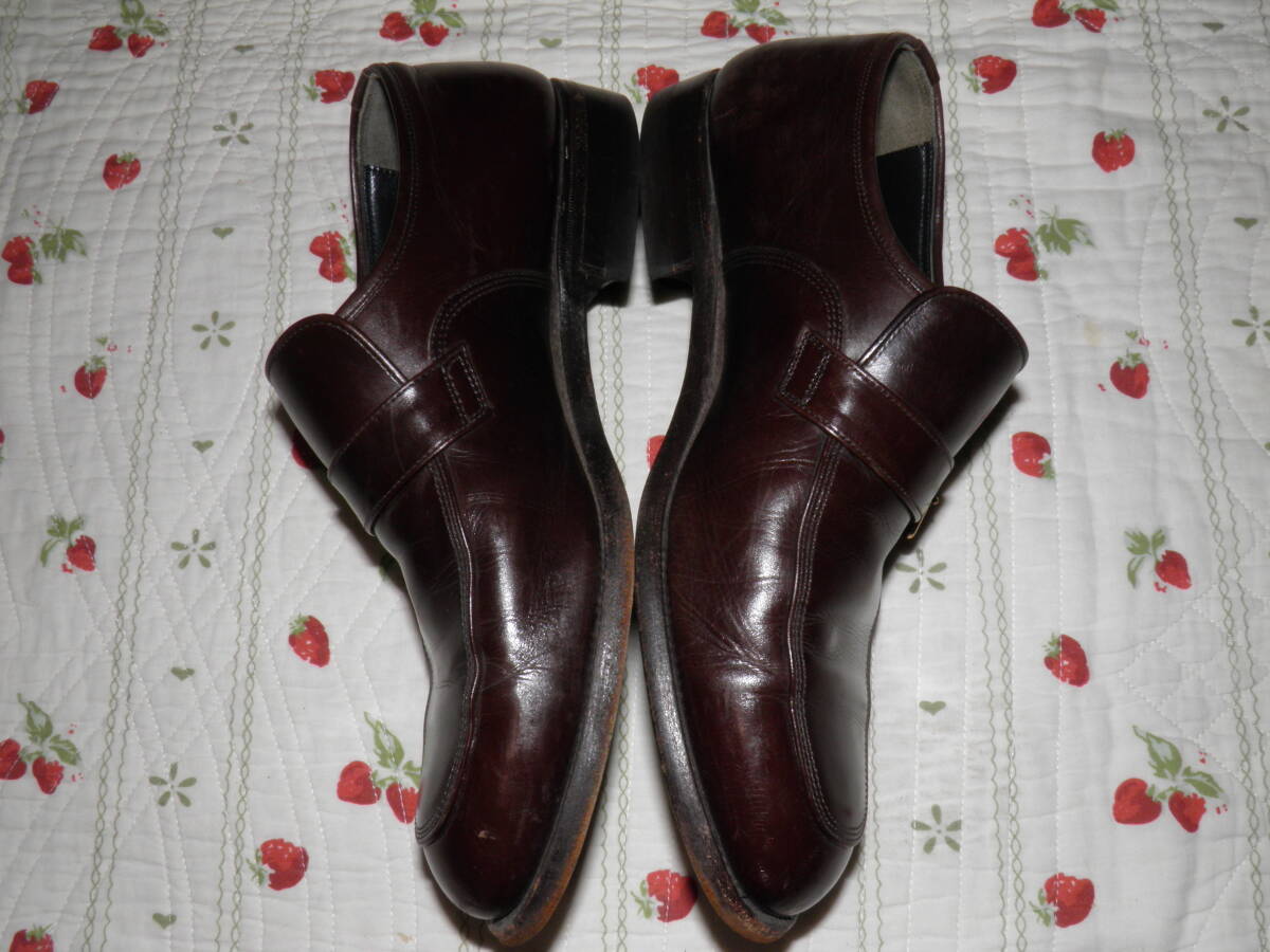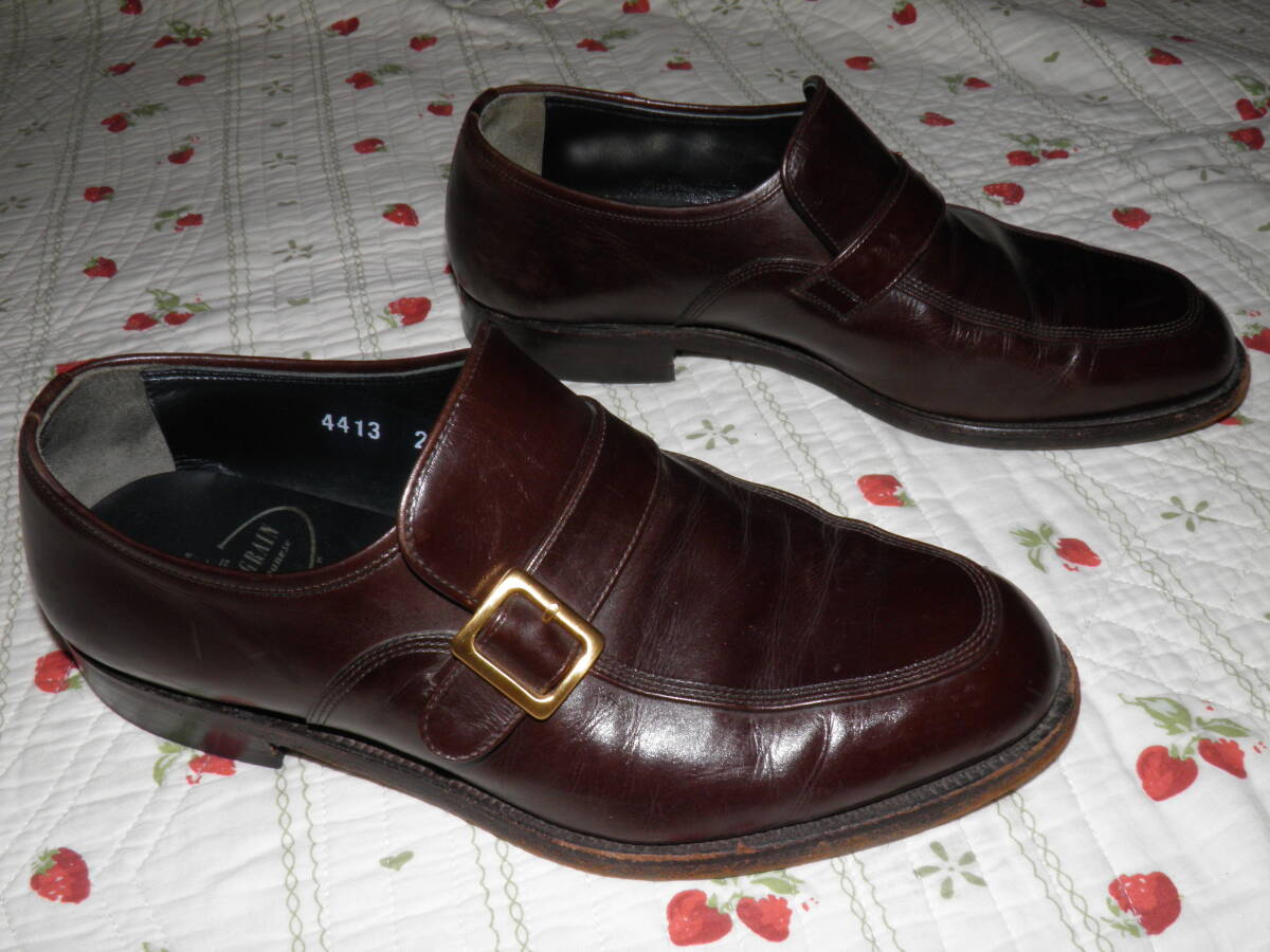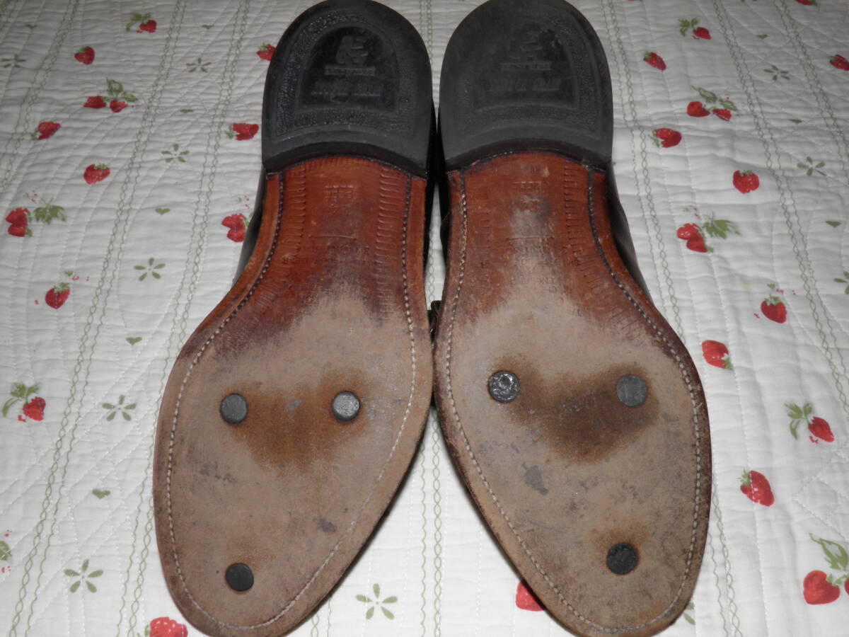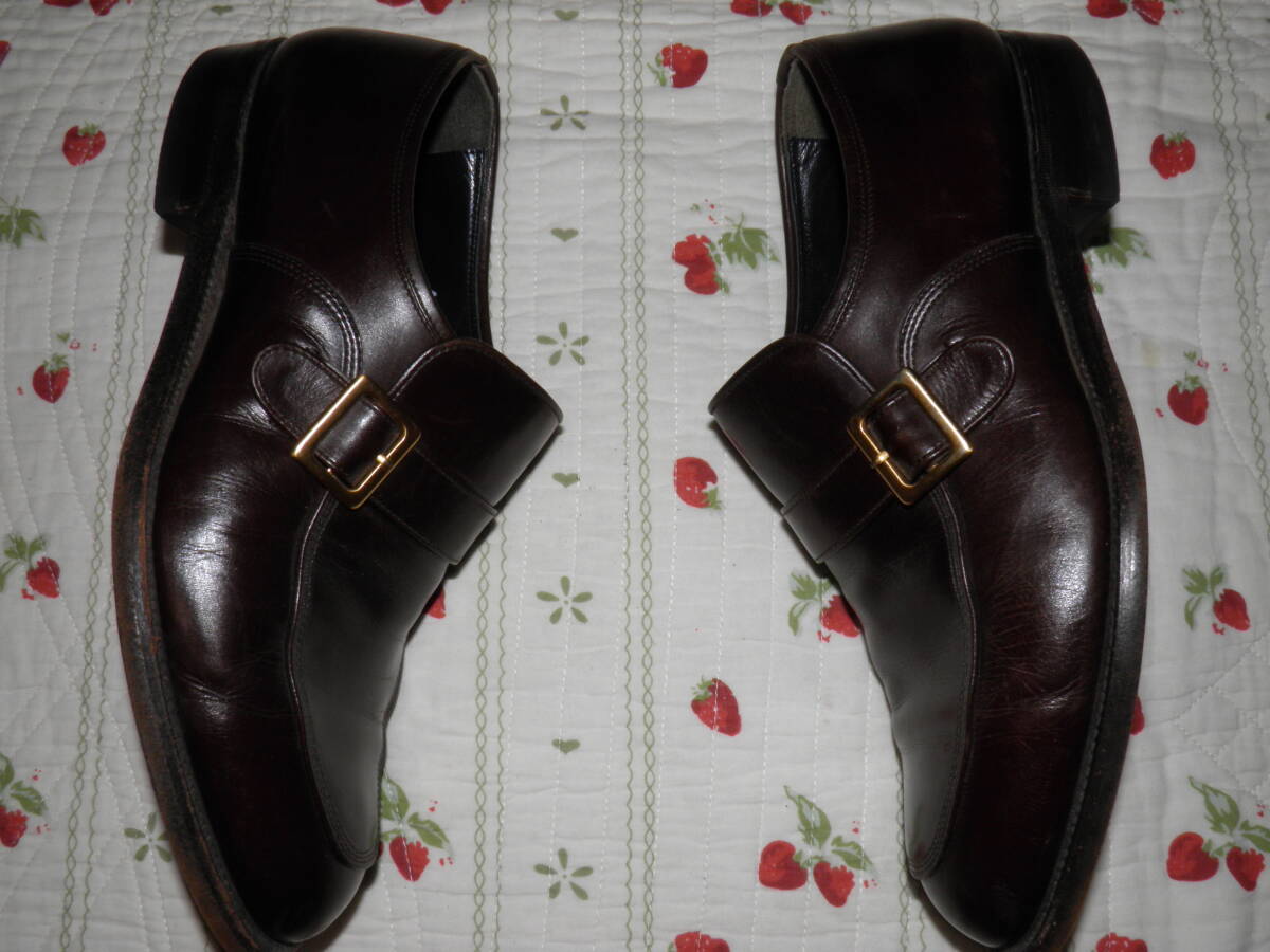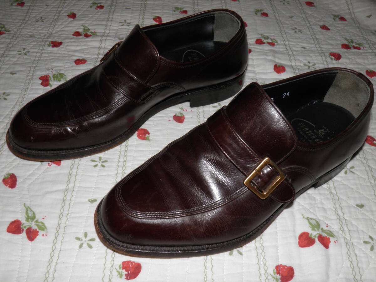 英国精神に学び、伝統あるグットイヤーウェルト製法を用い、日本の靴職人が作り上げたスコッチグレインのモンクストラップ シューズです。日本人の足の特徴に合わせた木型を使用し、グッドイヤーウェルト製法によるな堅牢な仕上がりも魅力です。ワイドなつま先がスタイリッシュ。ストラップベルトで、着脱がしやすいのもポイント。アウトソールには3ポイントソールをあしらった機能的な仕様です。日本人の足に合わせた履きやすい3Eウィズです。色は人気のブラウンで表記サイズは24cm 、アウトソール28cmです。素人採寸ですので多少の誤差はお許しください。素人保管につきノークレーム・ノーリターンでお願い致します。状態は人により判断が異なる場合がありますので、神経質な方の入札はお控えください。ご不明な点はお気軽にご質問ください。発送はヤフネコ宅急便を予定しています。落札後24時間以内に連絡、48時間以内に入金できる方のみ入札願います。