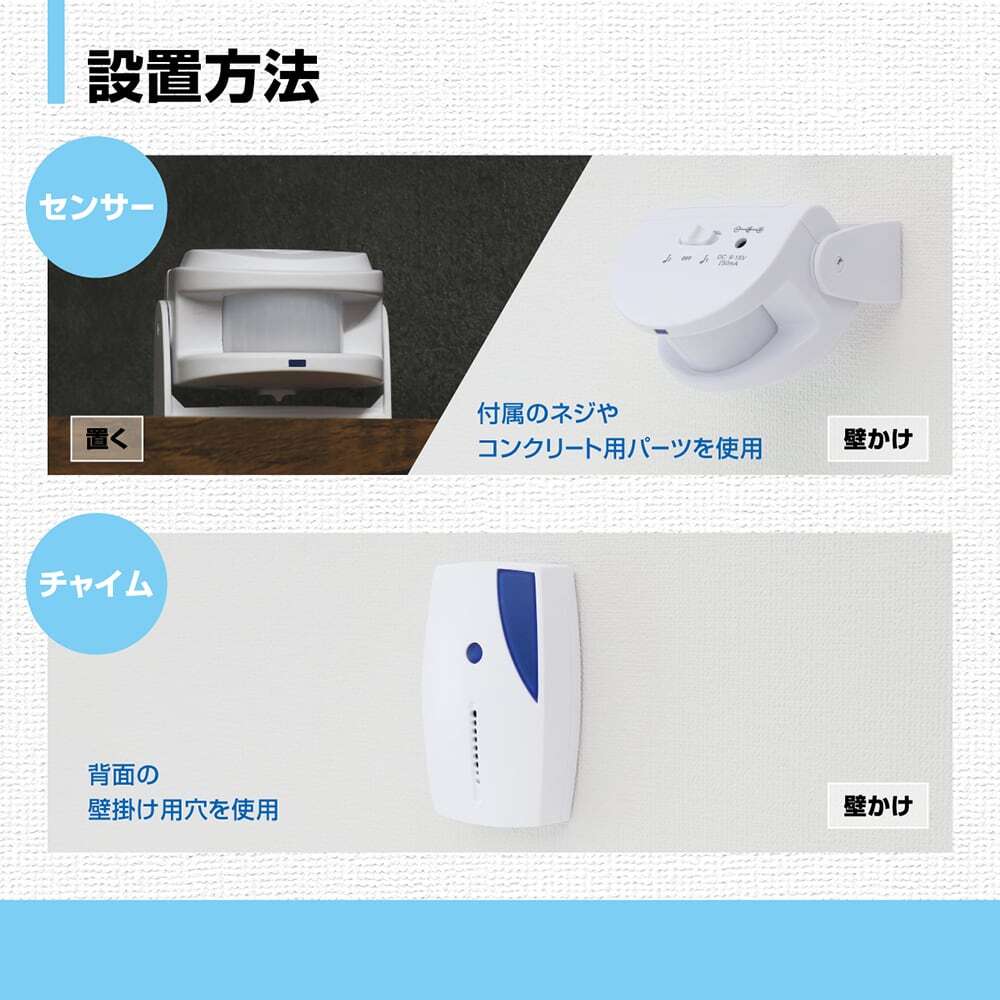ワイヤレスチャイム 赤外線センサーで 人の動きを検知 防犯 玄関 受付 店内 介護などに