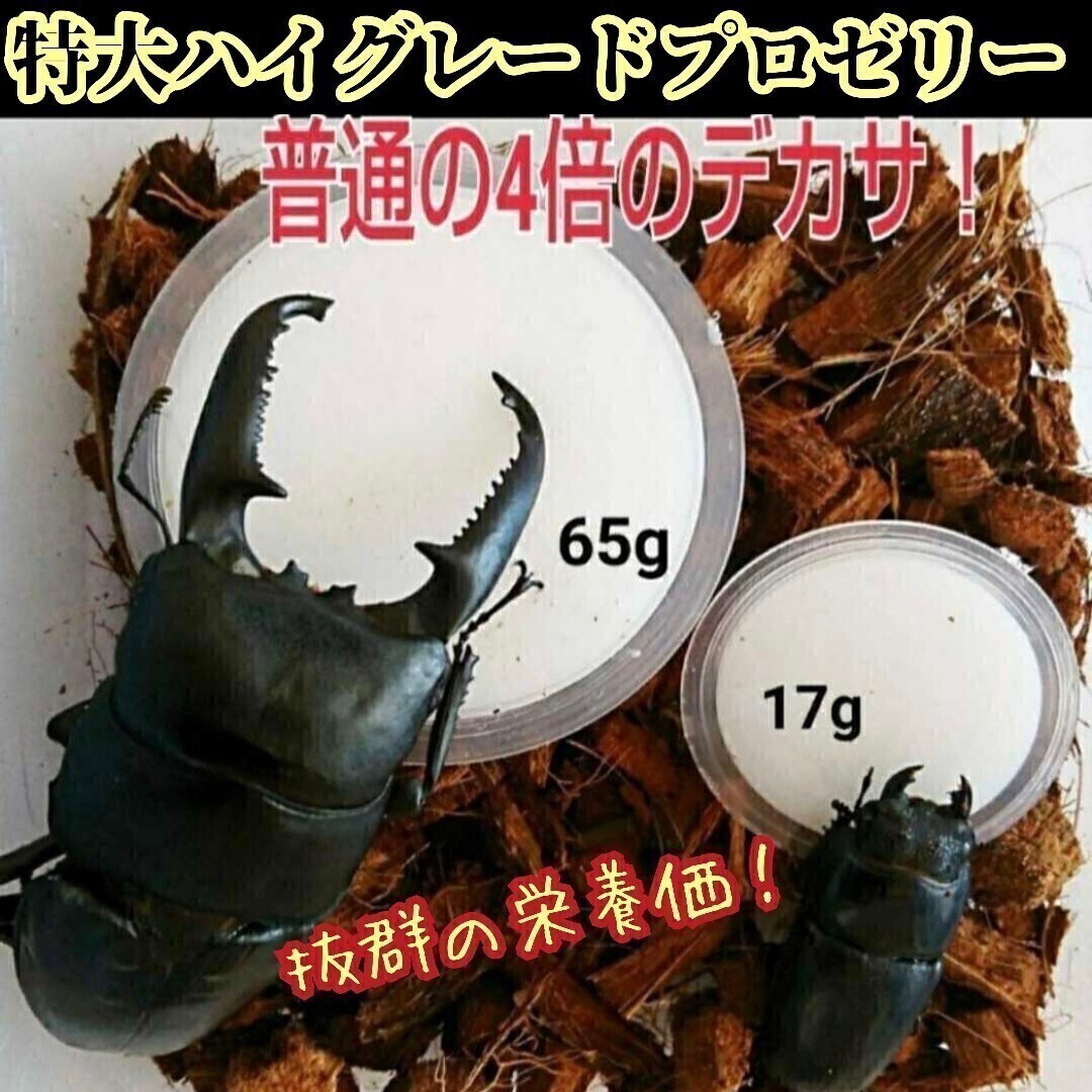 オオクワガタからミヤマ、ギラファ、ニジイロ、ヒラタはもちろんヘラクレスやコーカサスもこのゼリーで実験を繰り返し産卵数、寿命の長さが実証されてます。 30年以上クワガタ、カブトムシをブリードしてきて産卵数アップ、元気で大きく育つ為の要素を研究してきました。 その他の出品にある『プレミアム3次発酵マット』も試行錯誤して完成したものです。 今回の商品もたくさんのプロブリーダーの要望からできた超高タンパクゼリーです。