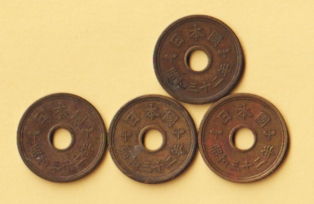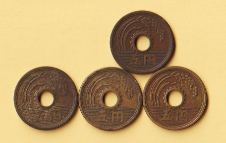 ☆5円黄銅貨《昭和32年》 4枚  普通品-