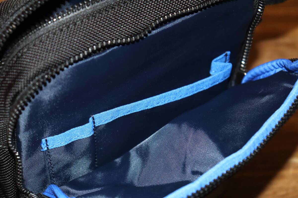 内側のクッションポケットにはエアーメッシュクッション材が使用されておりモバイルデバイス等を