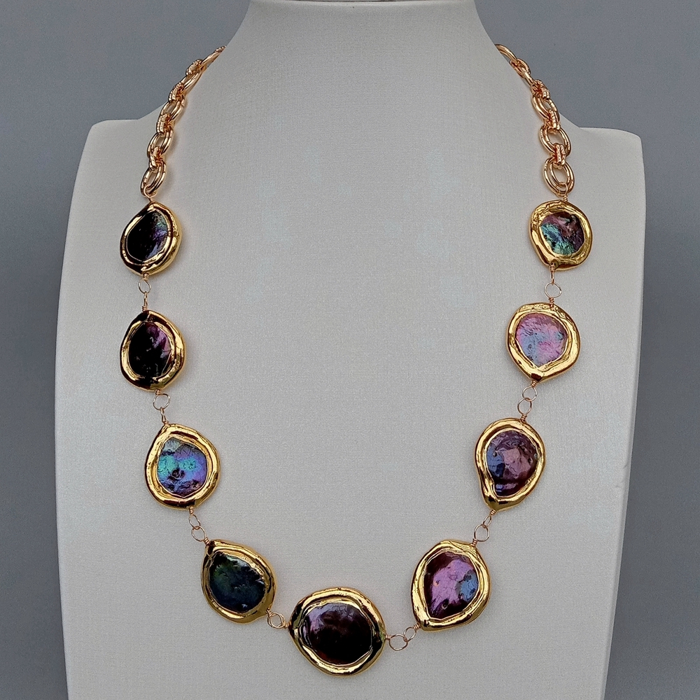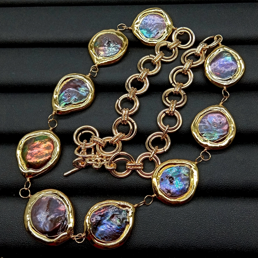 <新品>大粒 ブラック 淡水養殖 コイン パール 真珠 チェーン ネックレス 21インチ 結婚式 ダンス パーティー プレゼント