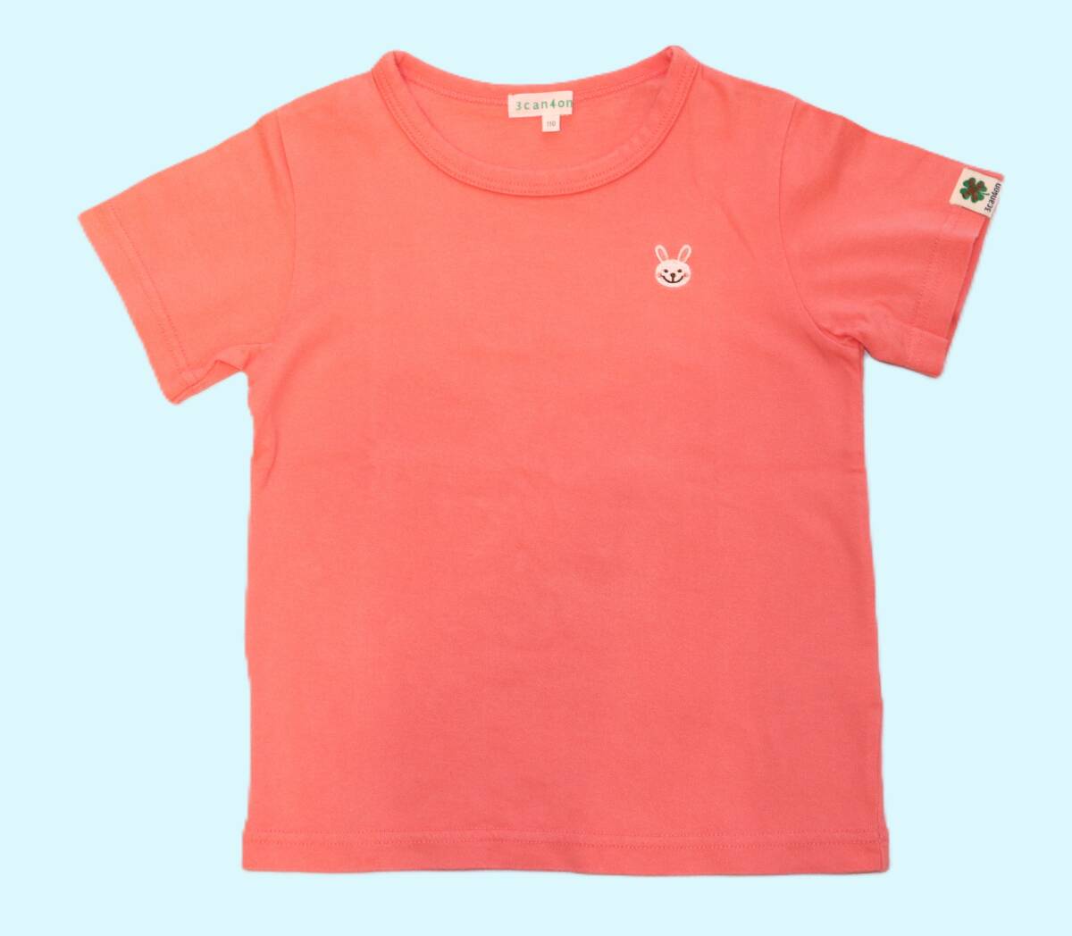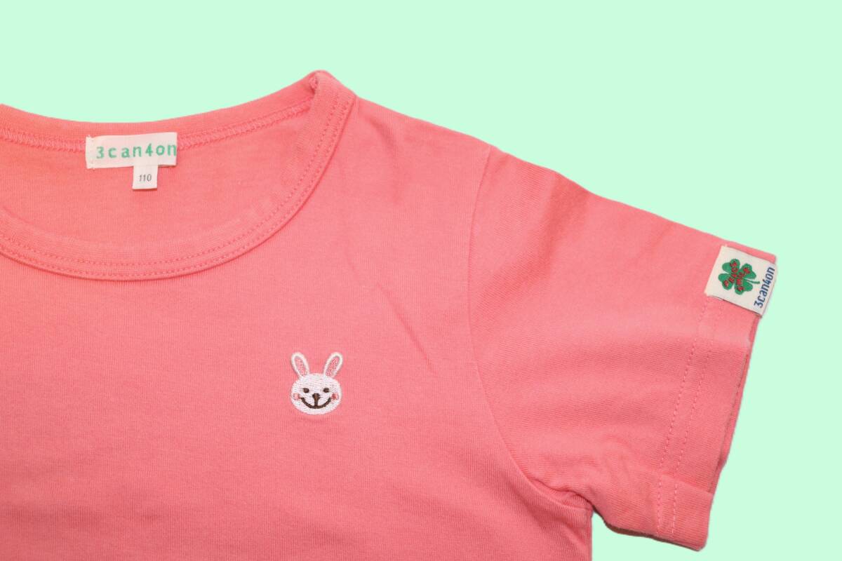 3can4on サーモンピンク Tシャツ カットソー うさぎ刺繍 110㎝ (株)ワールド