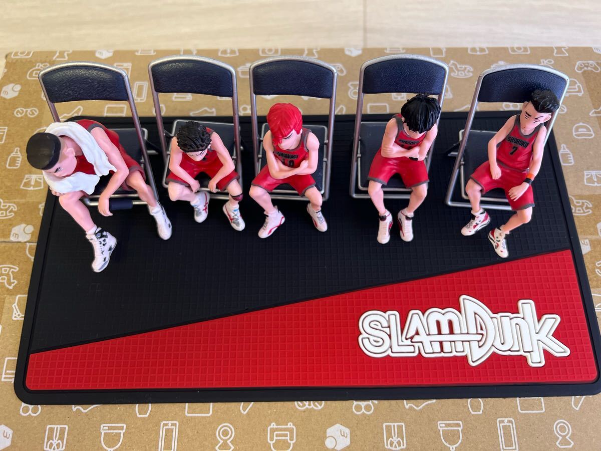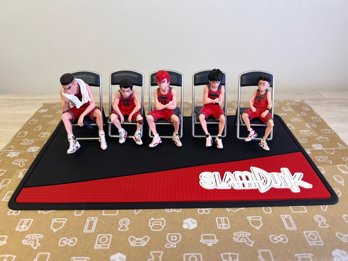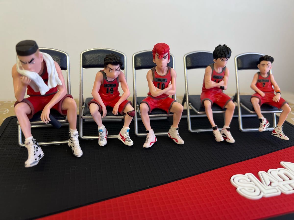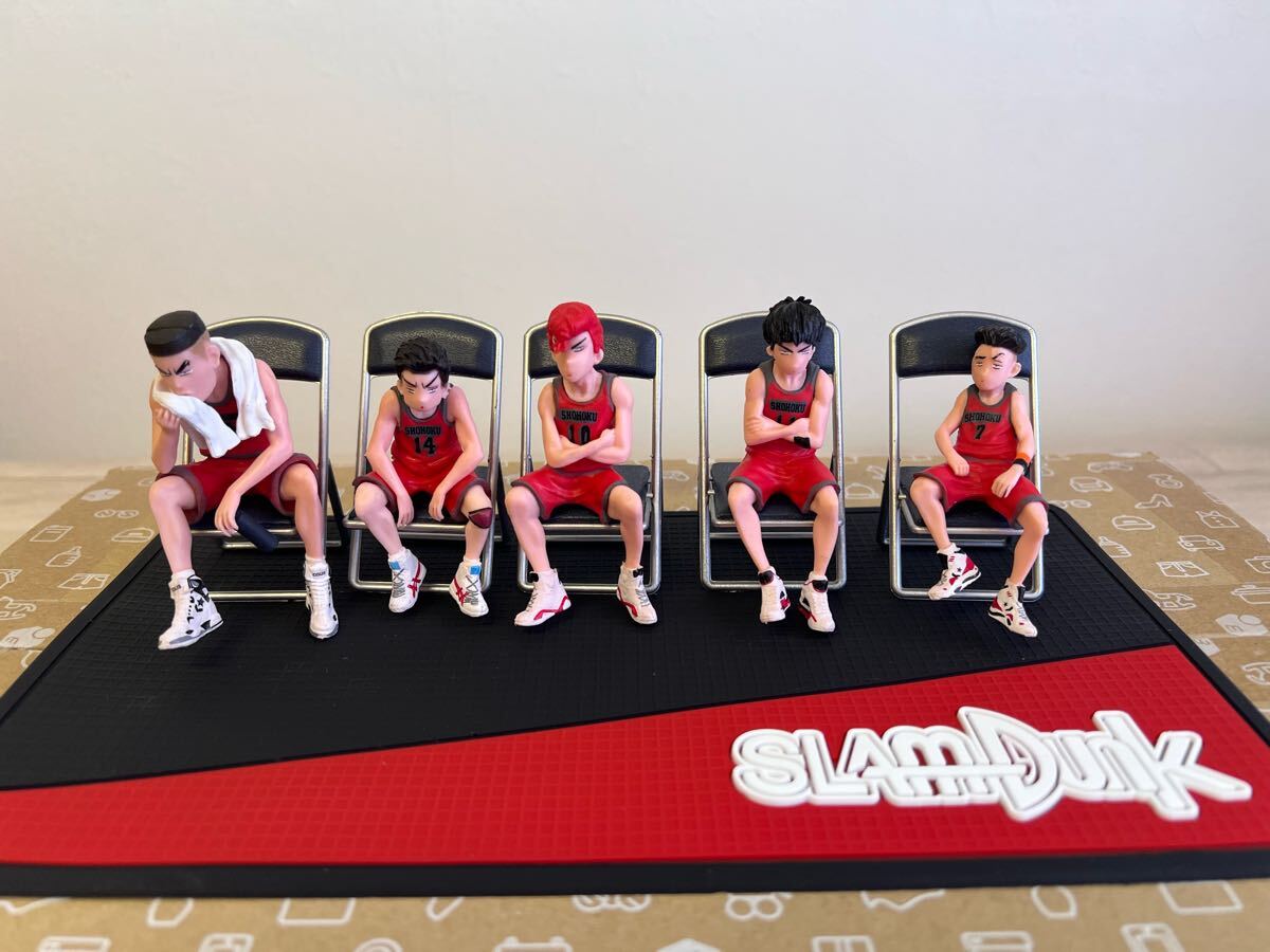 SLAM DUNKのキャラクターが座っている5体セットのフィギュアとスラムダンクマットレス