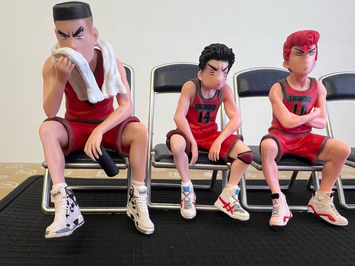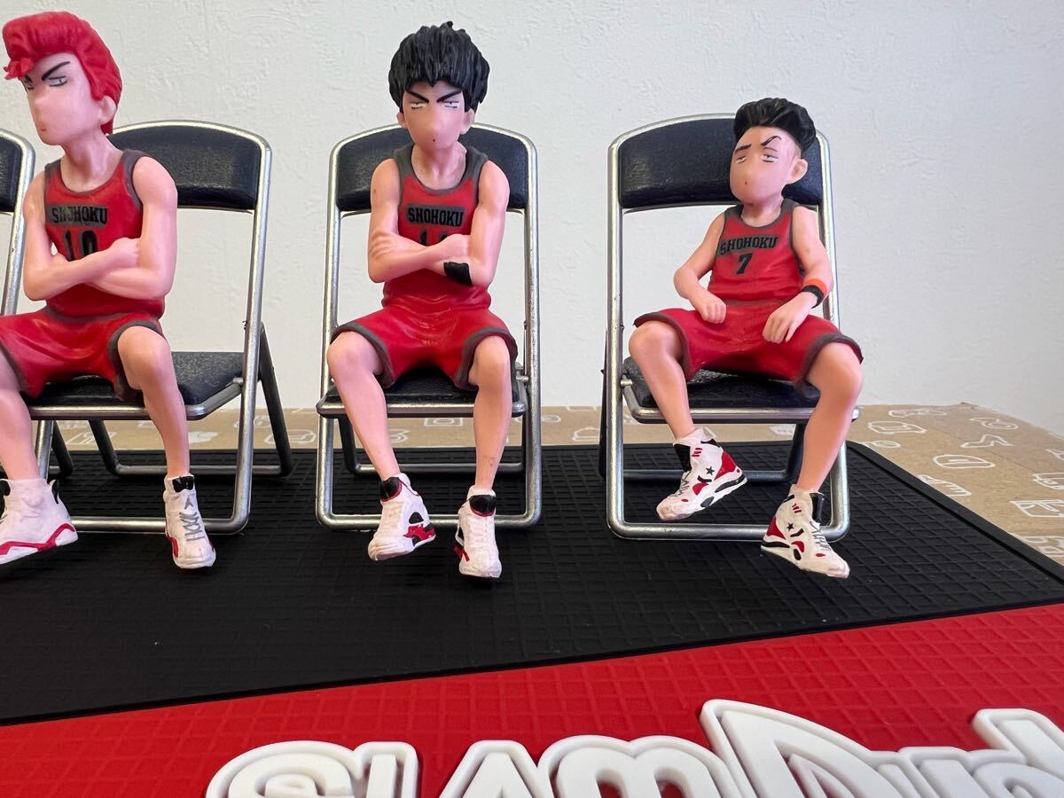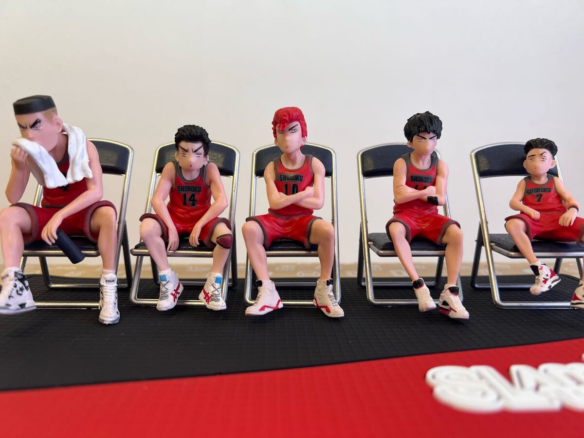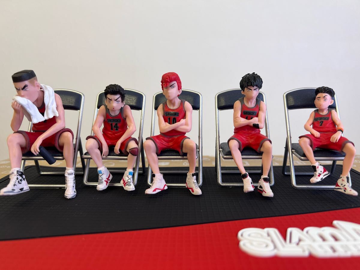 SLAM DUNKのキャラクターが座っている5体セットのフィギュアとスラムダンクマットレス