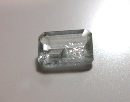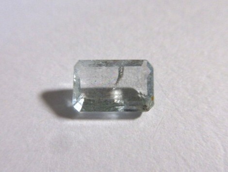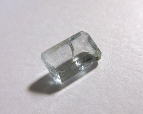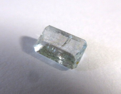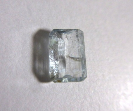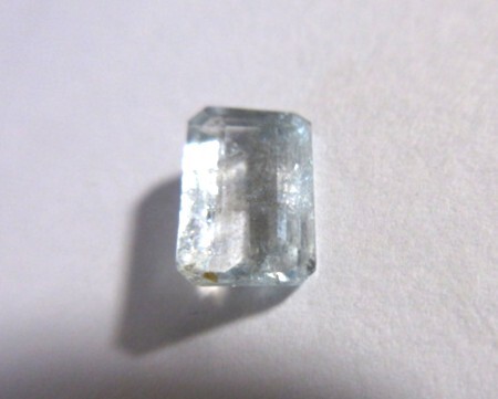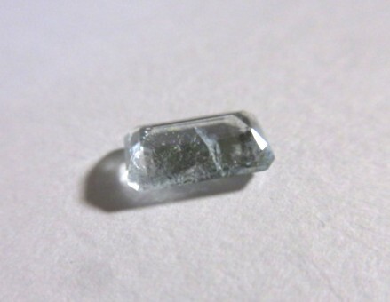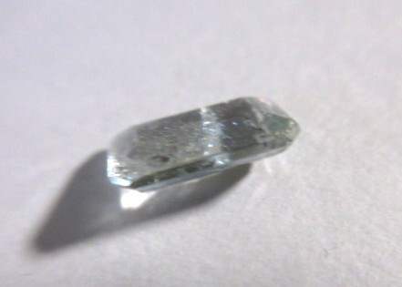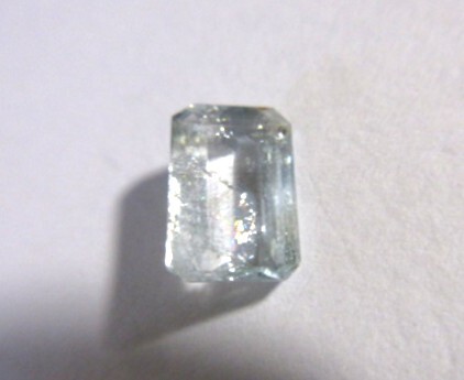 無色に近い淡い水色のアクアマリンです。レインボーが出ている部分があります。インクルージョンがありますが、透明感とテリがあります。NH