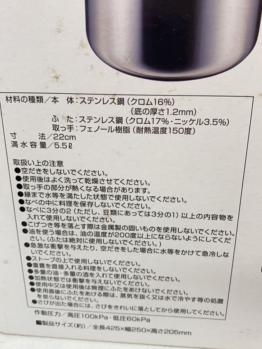 【圧力鍋】 幅:42.5 / 高さ:20.5 / 奥行:25 【その他】 その他サイズ:/ |
