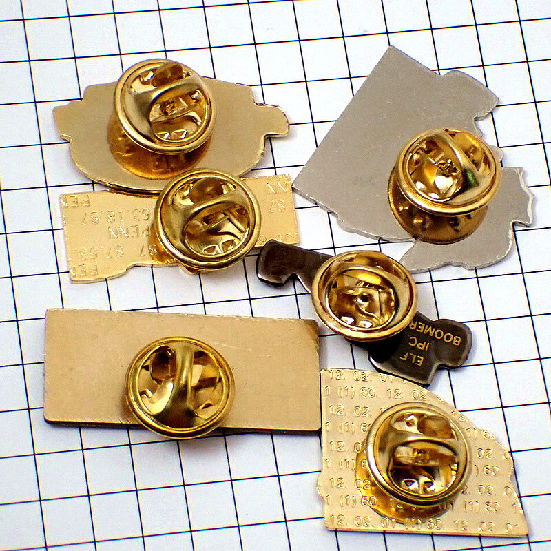 ピンズは、裏側に針が付いており、金属の留め金でとめるようになっています。 留め金が付属しています。新品の留め金も一緒に発送いたします。 | |