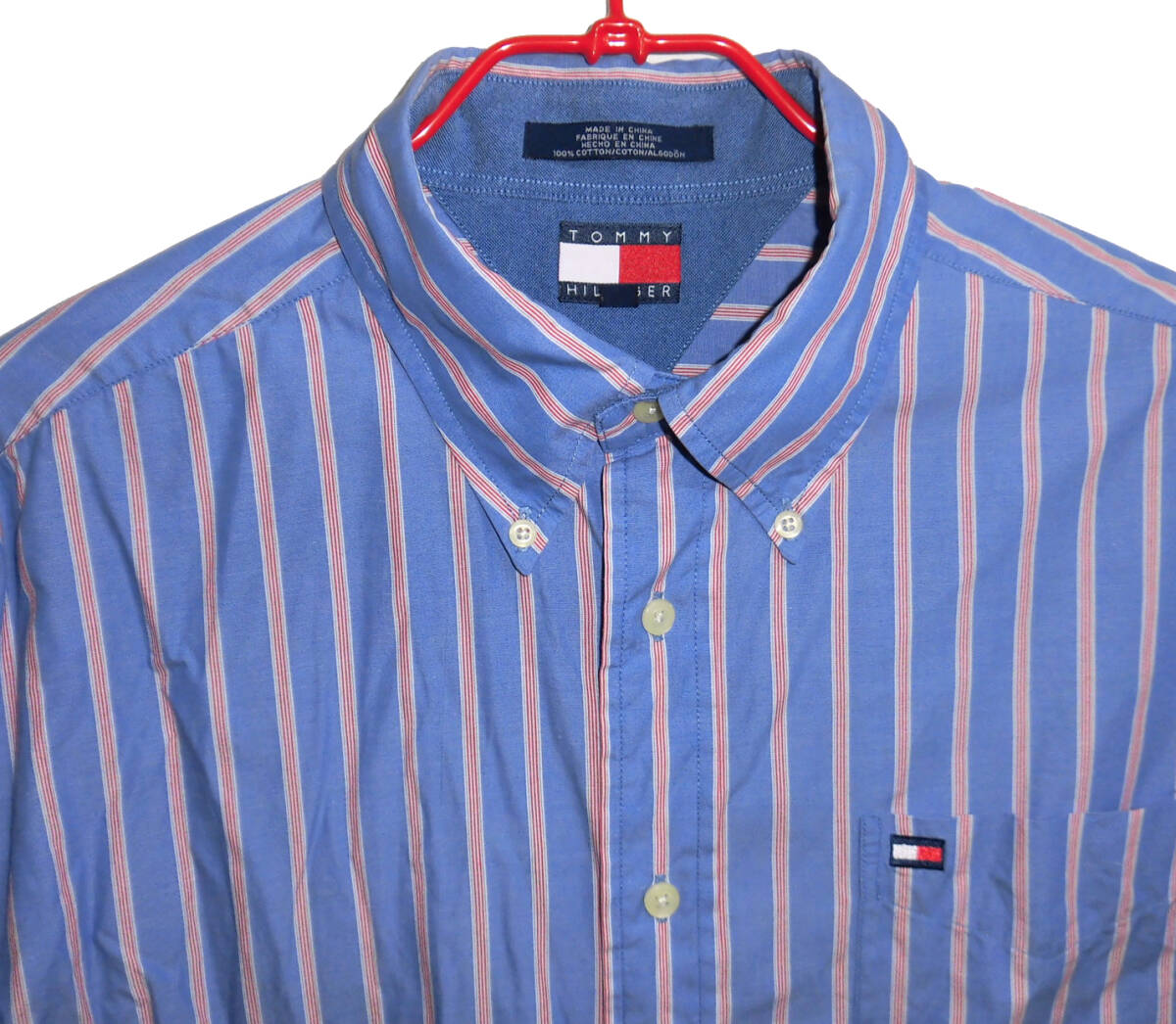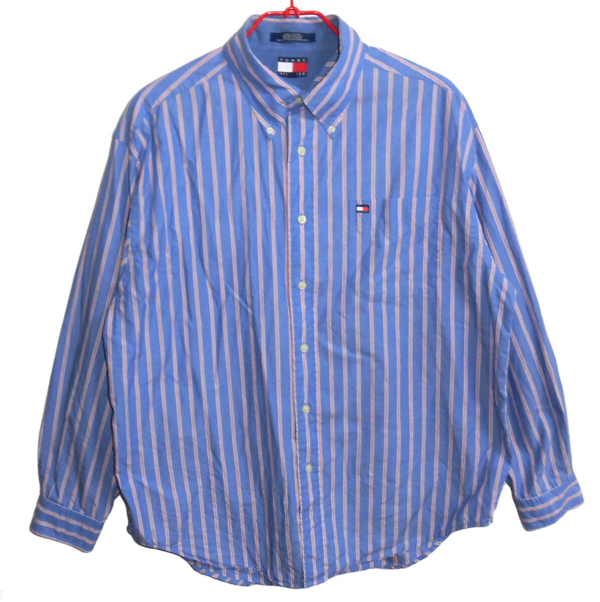 美品 90's ビンテージ TOMMY HILFIGER トミーヒルフィガー フラッグタグ ストライプ ボタンダウンシャツ L