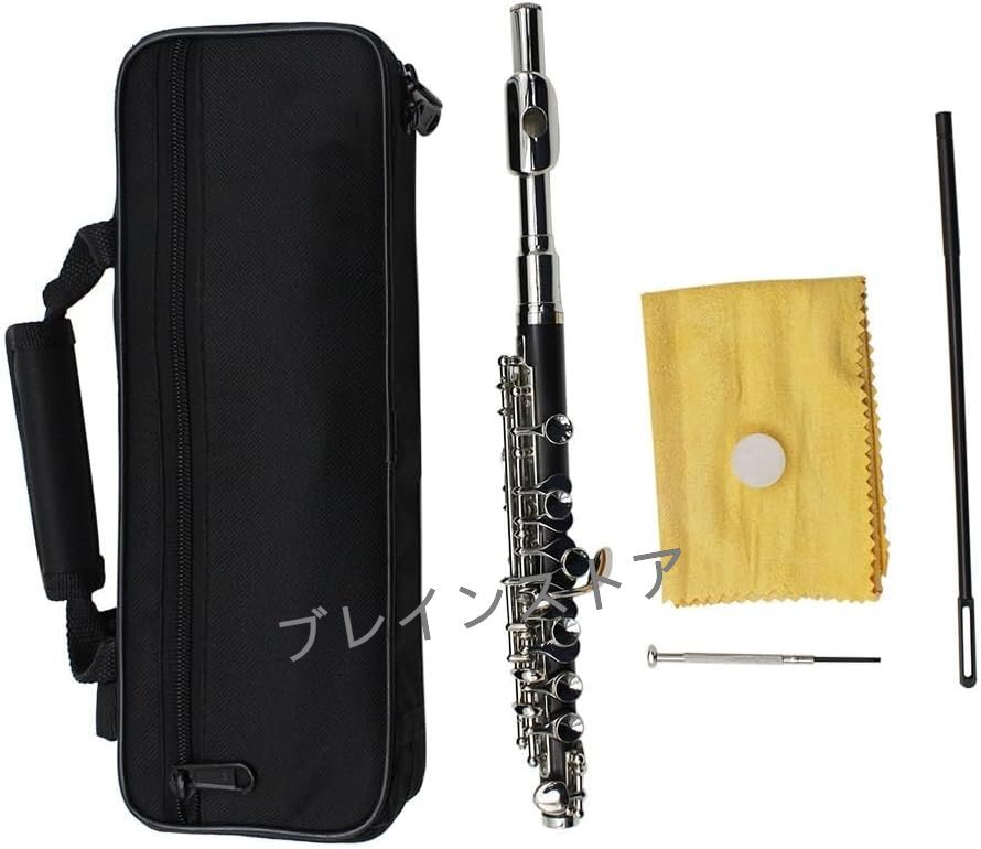 16キー Cキー ピッコロフルート、ハードケース、クリーニングロッド、クロス付き、ピッコロ楽器、初心者、学生、子供用