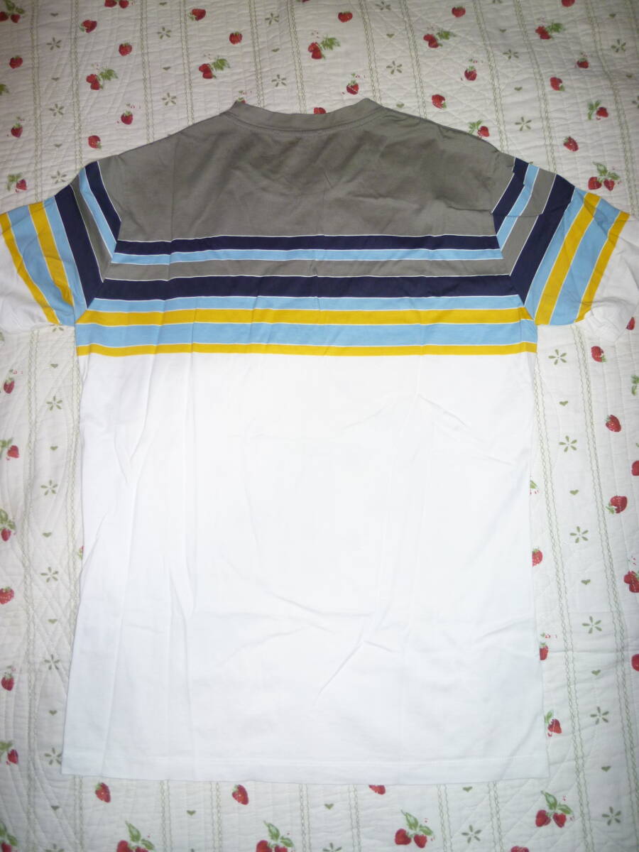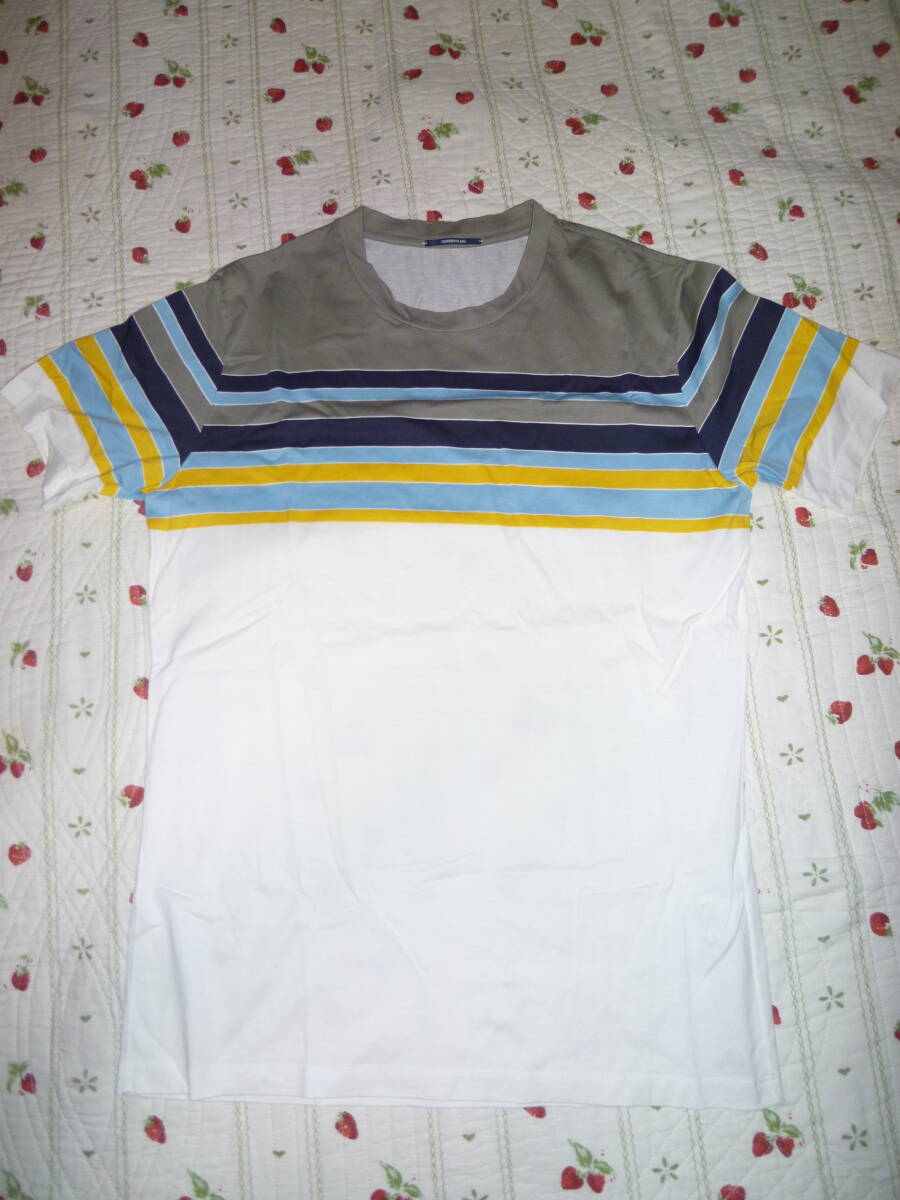 トラディショナル・マインドを大切にしながら、カジュアルからドレスまで、男の新しいエレガンスを提案するトゥモローランドのオリジナルストライプ柄Tシャツです。さわやかなカラーリングとスタンダードなデザインです。休日のライフスタイルに使えるオススメアイテムです。色はホワイトで表記サイズはSMALLで平置き実寸で脇身幅46、肩幅39、上袖丈19、着丈64(cm)です。素人採寸ですので多少の誤差はお許しください。素人保管につきノークレーム・ノーリターンでお願い致します。状態は人により判断が異なる場合がありますので、神経質な方の入札はお控えください。ご不明な点はお気軽にご質問ください。発送はネコポスを予定しています。落札後24時間に連絡可能で48時間以内に入金できる方のみ入札願います。
