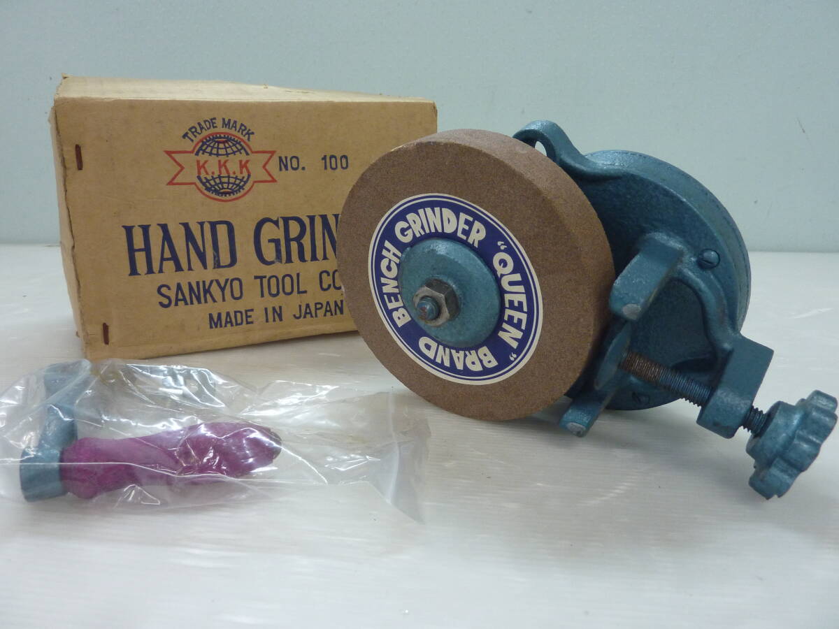 手回しグラインダー ハンドグラインダー ミニ手動グラインダー KKK 三協 手動 卓上  研磨 回転砥石 工具 固定具