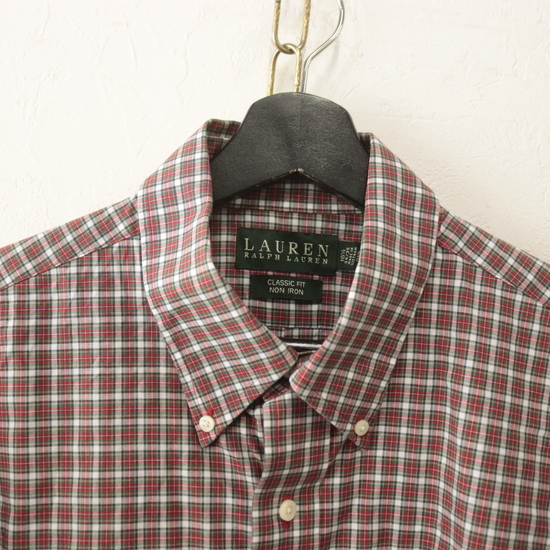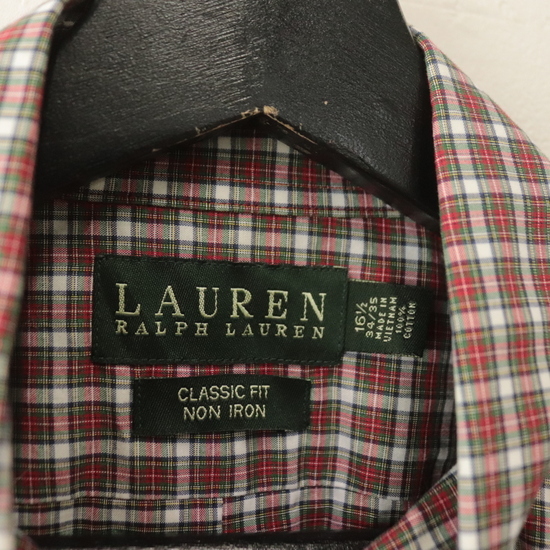 P947 2000年代製 LAUREN RALPH LAUREN 長袖シャツ■00s 表記16ハーフサイズ レディース 赤 レッド ボタンダウン チェック アメカジ 古着