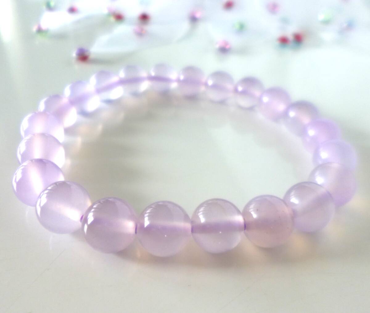 ☆穏やかな癒し☆良好な人間関係☆緊張の緩和☆愛と優しさ☆ ☆高品質AAA☆ ☆パープルカルセドニー☆ ☆8mm☆ ☆16cm☆