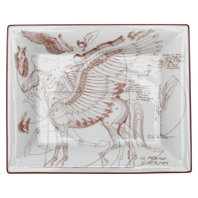 エルメス ペガサス 皿 プレート 小物入れ ホワイト ブラウン 陶器 レディース HERMES 【中古】