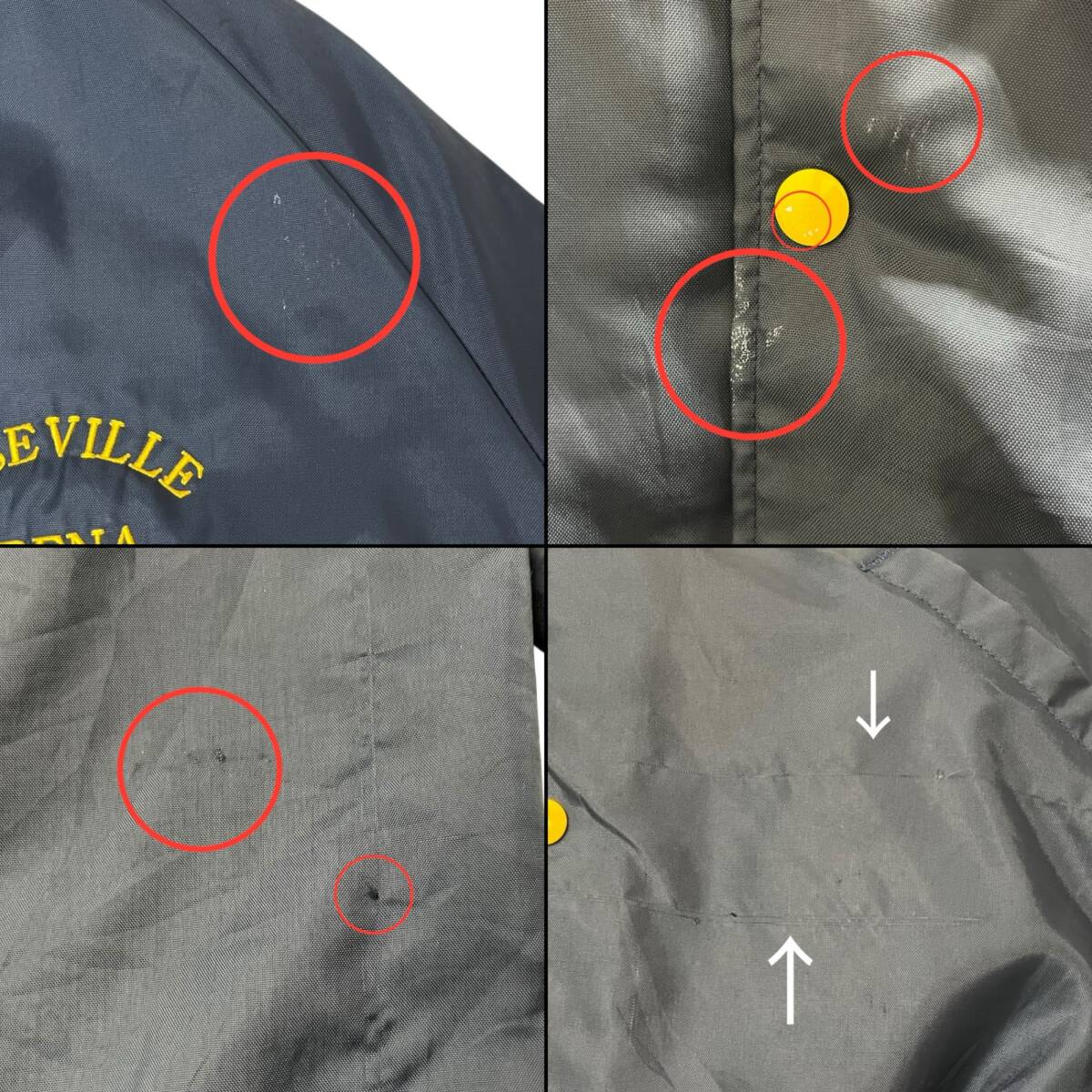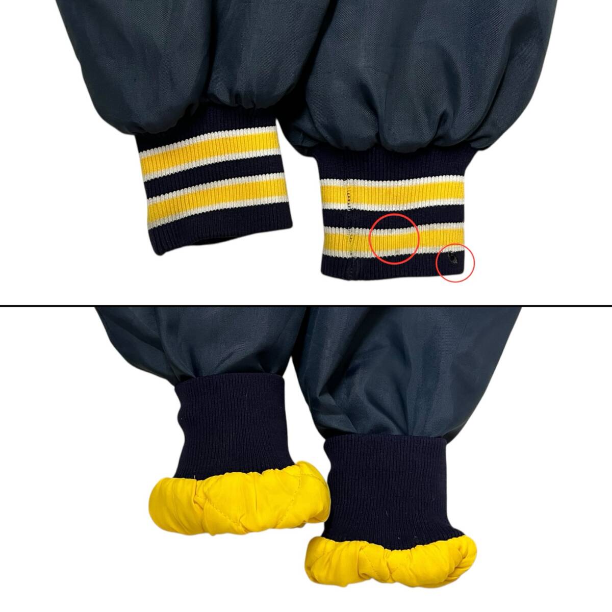 状態詳細 | 白い汚れ、伝線、糸ほつれ、穴開きが複数箇所あり。襟部分汚れあり。裾リブ部分に穴開きと汚れあり。ボタン汚れあり。(写真参照) ・出来る限り状態の記載はいたしますが見落としにより完全に表記が出来ない場合がございます。 ・『新品』『デッドストック』『未使用品』表記の商品におきましても未使用品ですが、汚れ・伸びなどが若干生じる場合があります。 ・ご利用のパソコン環境や撮影時の光の加減で色や素材感などうまく表現できない場合があります。 ・気になる点は必ず落札前にご質問をお願いいたします。 |