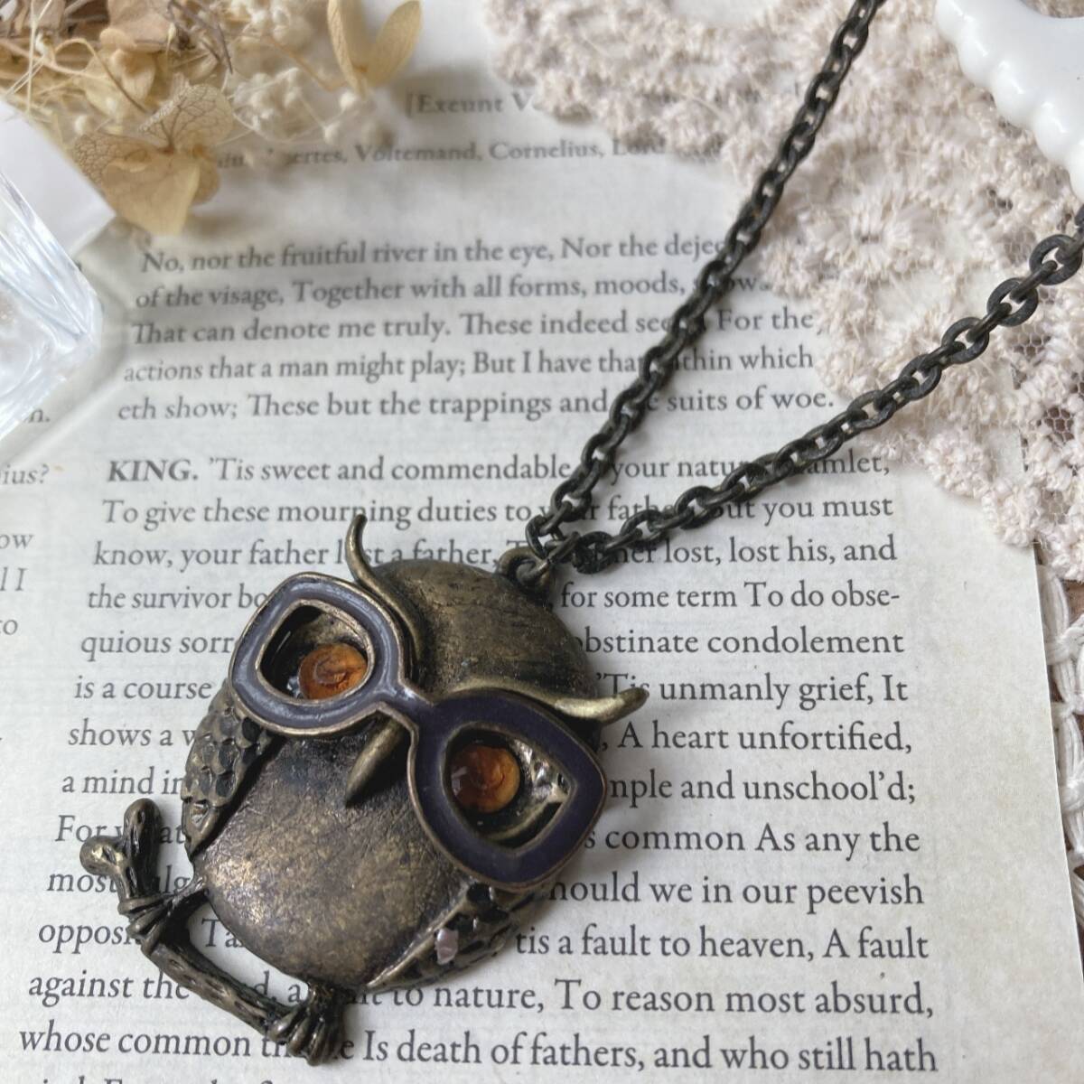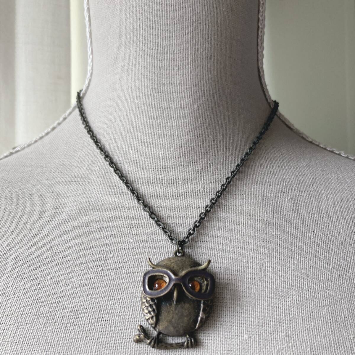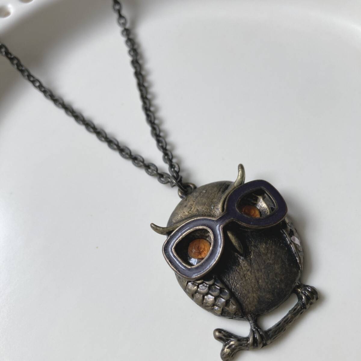 アンティーク調ネックレス ふくろう ペンダント 金古美 ガラス メガネ 美品 クレアーズclaire's☆vintage jewelry accessoriesR0803