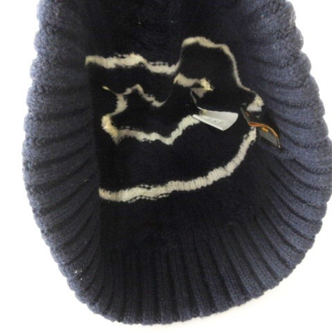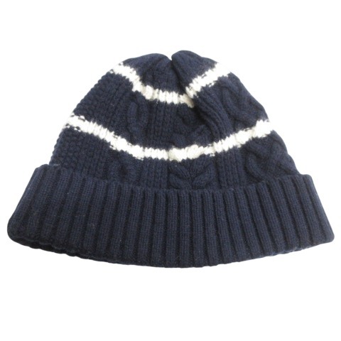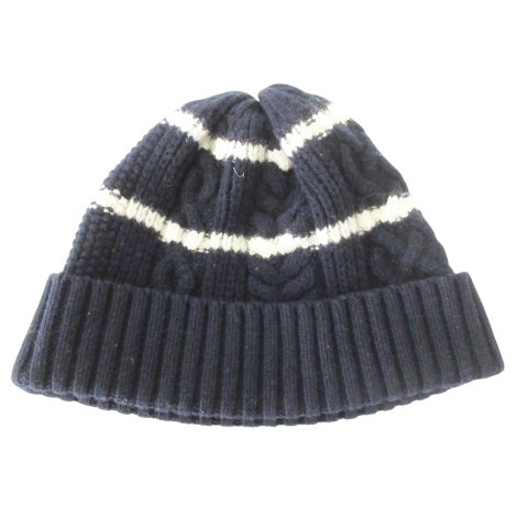 HBNS ハバノス ニット ビーニー 帽子 ライン ウール混 日本製 紺 ネイビー レディース
