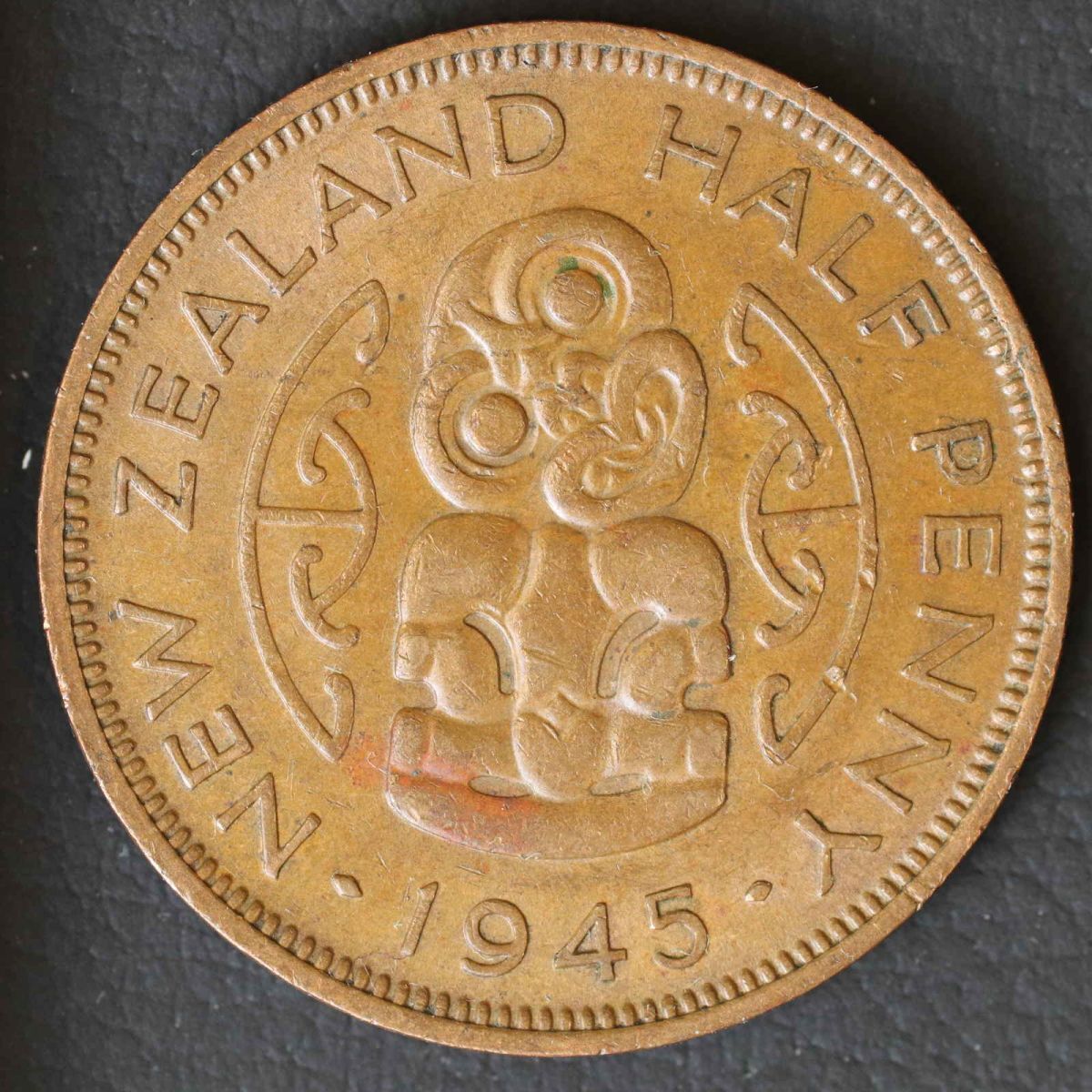 *[令]ニュージーランド コイン 1/2ペニー(1945) [E8281]7m9