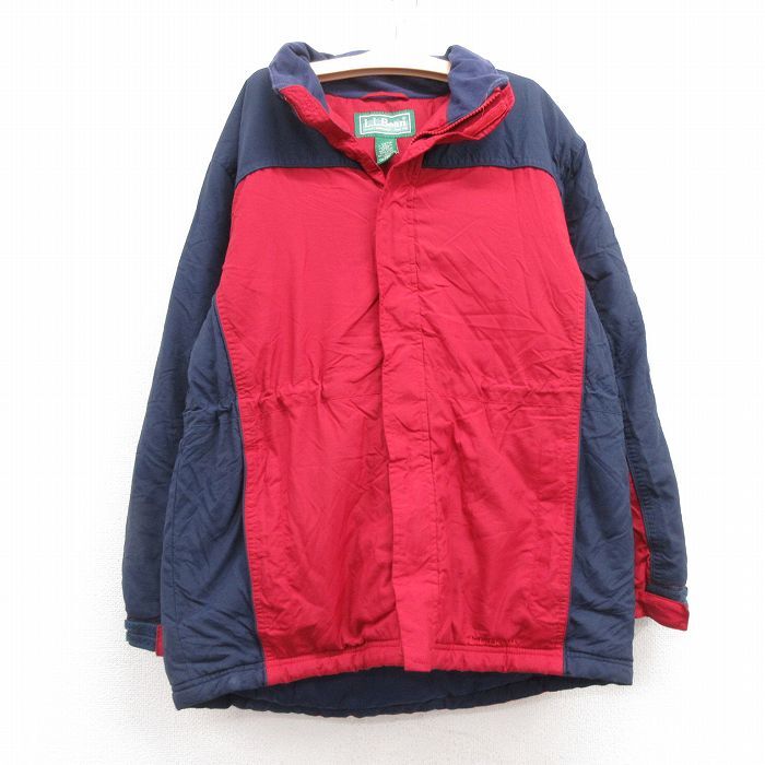 【商品名】 古着 エルエルビーン 長袖 ナイロン ジャケット パーカー キッズ ボーイズ 子供服 ワンポイントロゴ シンサレート ツートンカラー 赤