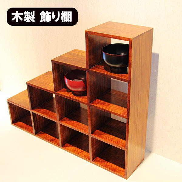 飾り棚 階段タンス 漆塗り 和風 和室 床の間 盆栽棚 木製 漆器 飾棚 飾り台 違い棚 置物 台