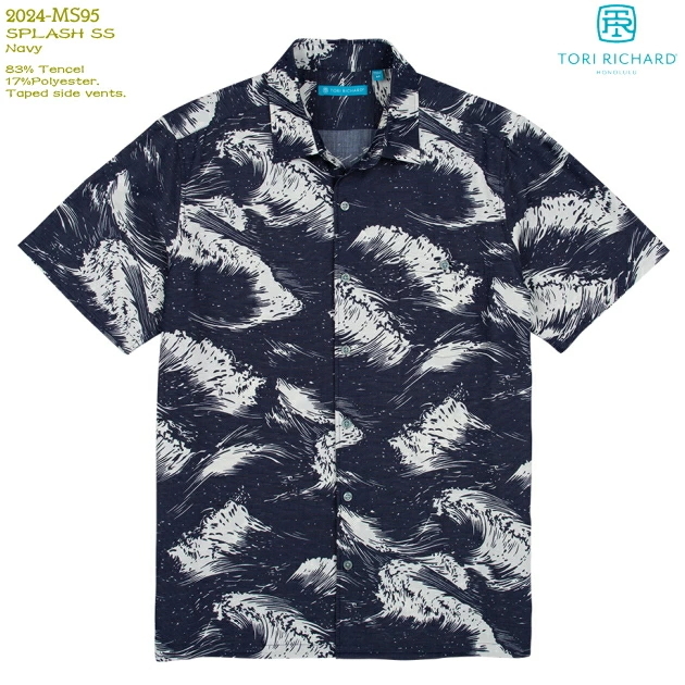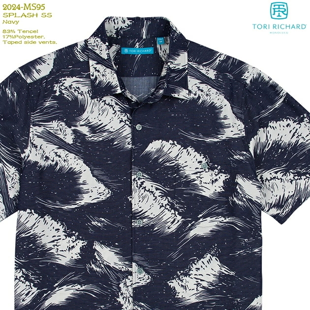 アロハシャツ トリリチャード(TORI RICHARD) tori-2024MS95 SPLASH(スプラッシュ) ネイビー メンズ テンセル83% ポリエルテル17% ノーマル襟(レギュラーカラー) フルオープン 半袖 アメリカサイズのSです。