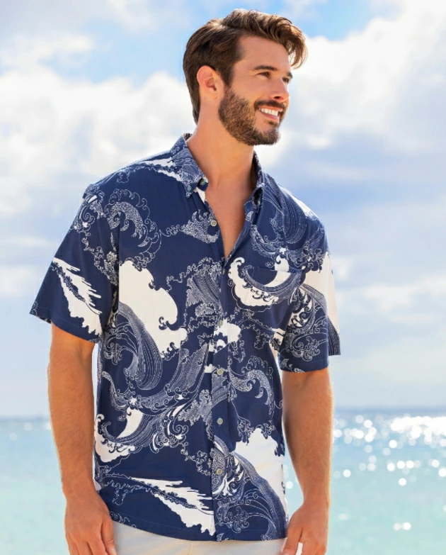 大人心をくすぐる、エキゾチックなデザインが多いことから四〇歳からのアロハシャツとして最適だろう。ホノルルに1956年に創業されたトリ・リチャードだがその名は、創業者モーティマー・フェルドマン氏の二人の子供、ビクトリアとリチャードから名付けられたという。ハワイを拠点とし、自ら生み出すデザインは、芸術と言い切るクオリティの高いブランドである。リゾート・アパレル会社ということもあり、アロハシャツというより、リゾートウエアと表現したほうが似合うかもしれない。もちろん、生地は厳選されたクオリティの高い素材を使用している。薄手で柔かい風合いのローンと呼ばれるコットン生地や、緩やかな妖艶なドレープ感のあるスパン・ヴィスコースの生地を中心にシルクとコットン、リヨセル、レーヨンなどの混合素材の生地を使用したモデルも人気が高い。その中のコットン・ローンは、通常イメージされるコットンの肌触りとは異なり、シルクの肌触りに近く、スベスベとした滑らかな質感が特徴である。トリリチャードはヨーロッパ市場でも流通しているブランドだが、このコットン・ローンはエジプトコットンと呼ばれるほどで、特に高温多湿のために開発されている。日本の気候にも適したアロハシャツに仕上がっており、、快適なアロハ生活のアイテムとして活躍してくれるだろう。ヨーロピアンテイストの輝きを放つ、リゾートウエアである。